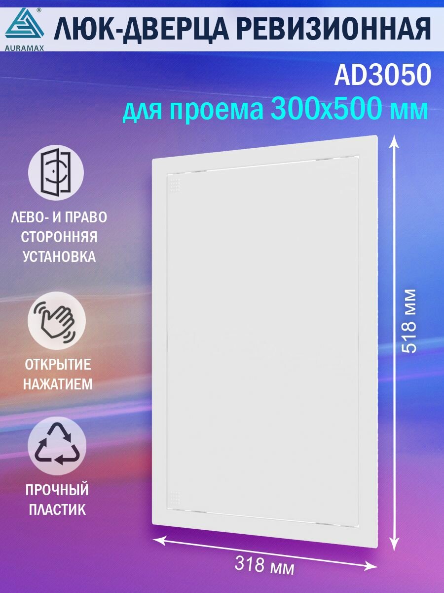 10 цен на Люк ревизионный Auramax AD3050 для проема 300х500 мм (рамка 318х518 мм. фланец 296х496 мм) пластиковый. нажимной. белый