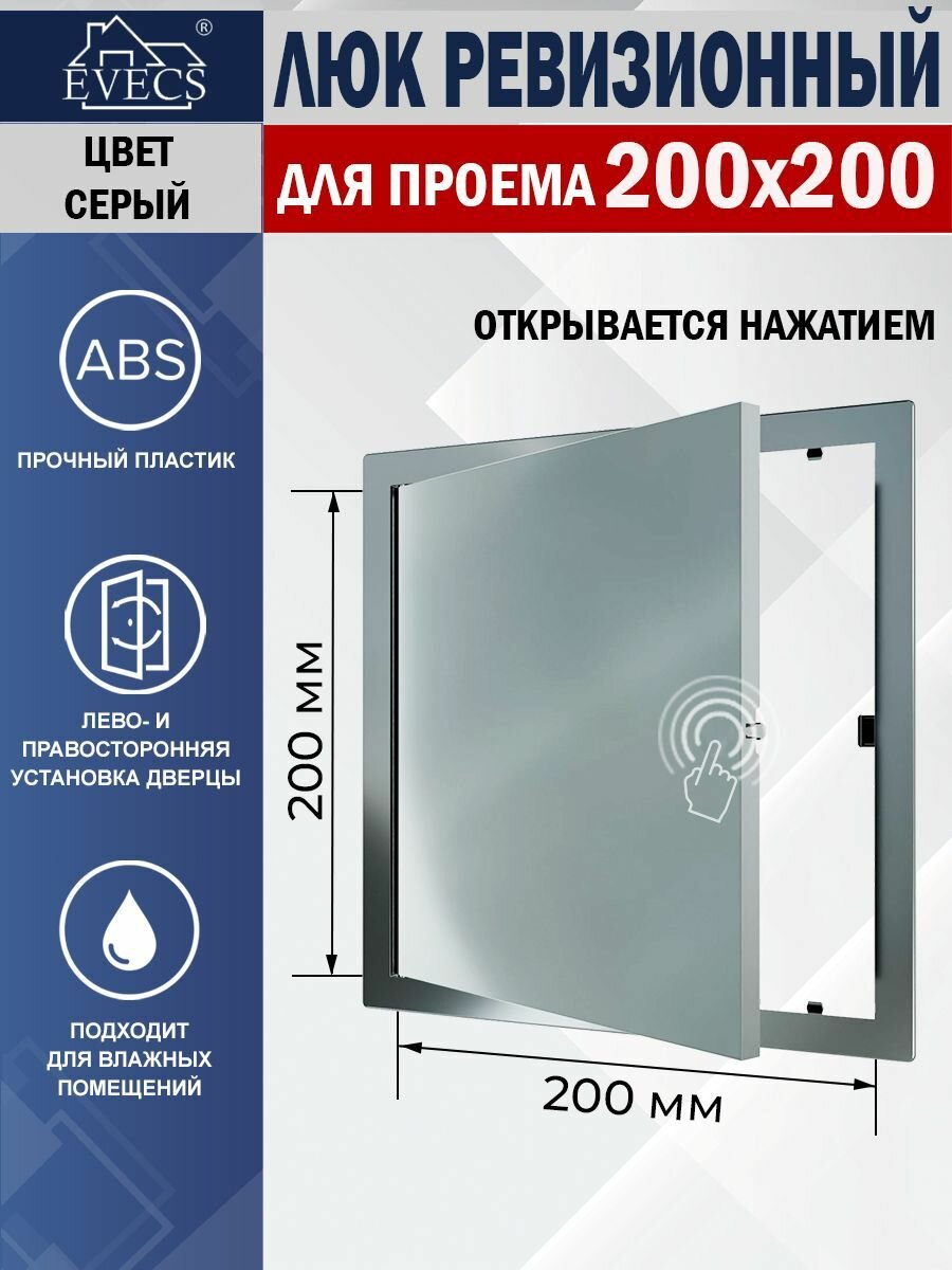 10 цен на Люк ревизионный EVECS L2020N, фланец 200х200 мм, рамка 224х224 мм, пластиковый, нажимной, серый