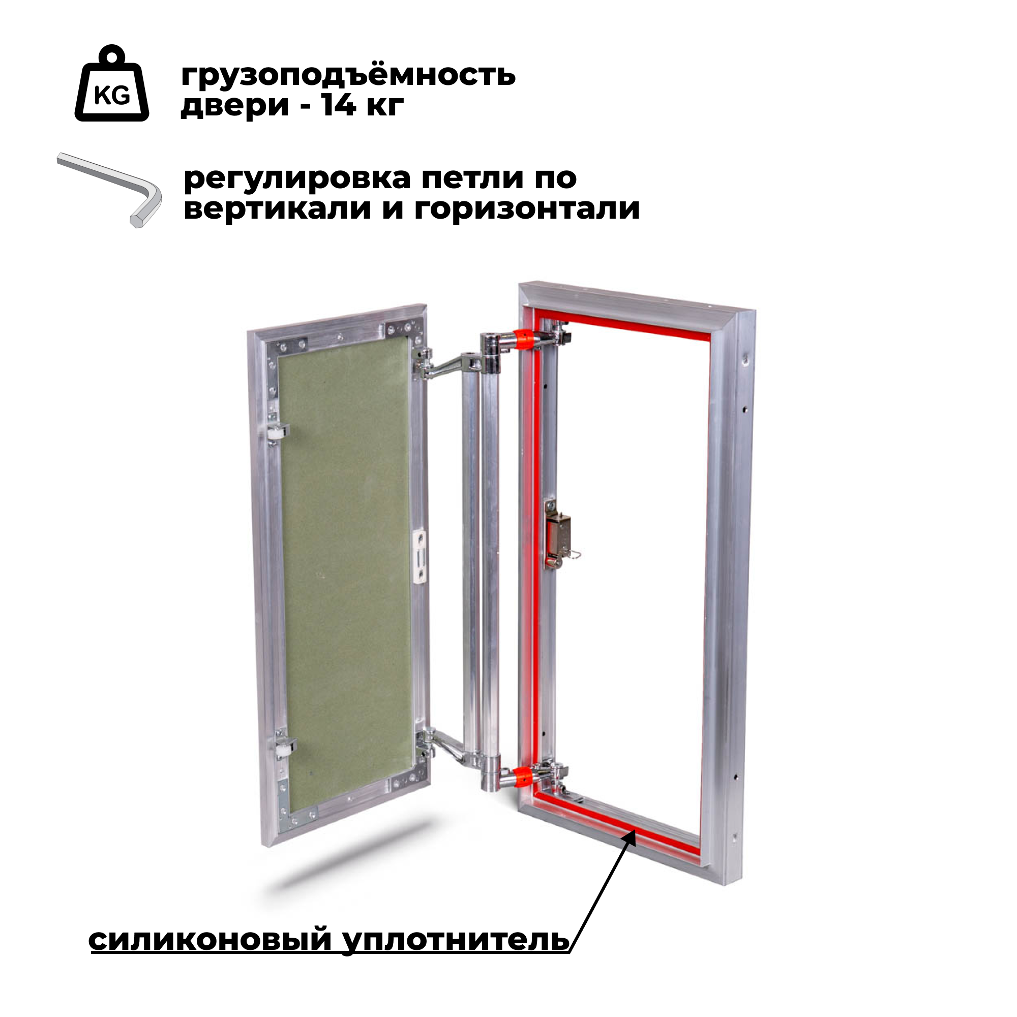 Скрытый ревизионный люк 30х60 (ШхВ) под плитку «Евроформат» Практика, нажимной, распашной информация: