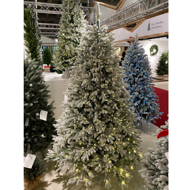 Искусственная ель гамильтон (литая хвоя PE+PVC), заснеженная, 700 холодных белых LED-огней, 228 см, National Tree Company 150 111 ₽