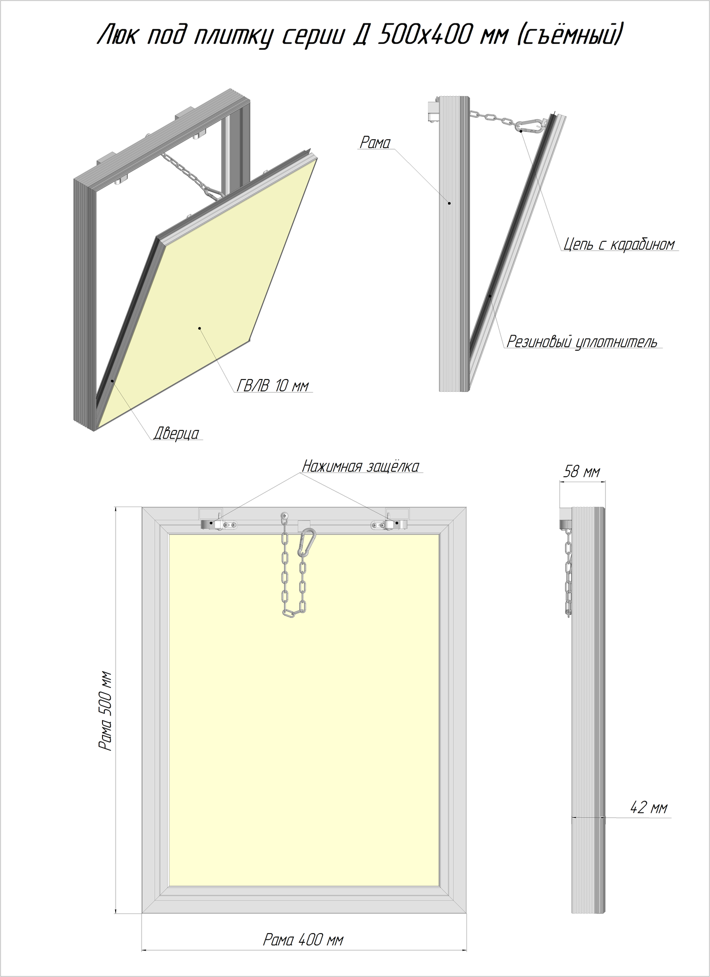 Люк под плитку (В/Ш) 50/40, съёмный, LYUKER, серия "Д", алюминиевый, с цепочкой и карабином информация: