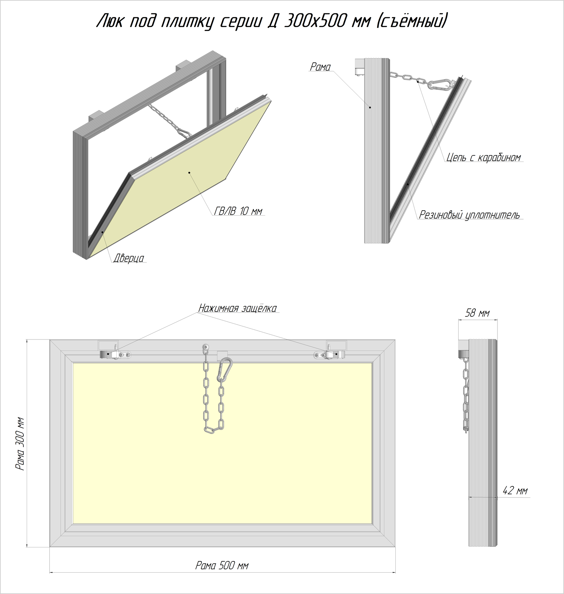 Отзывы на Люк под плитку (В/Ш) 30/50, съёмный, LYUKER, серия "Д", алюминиевый, с цепочкой и карабином