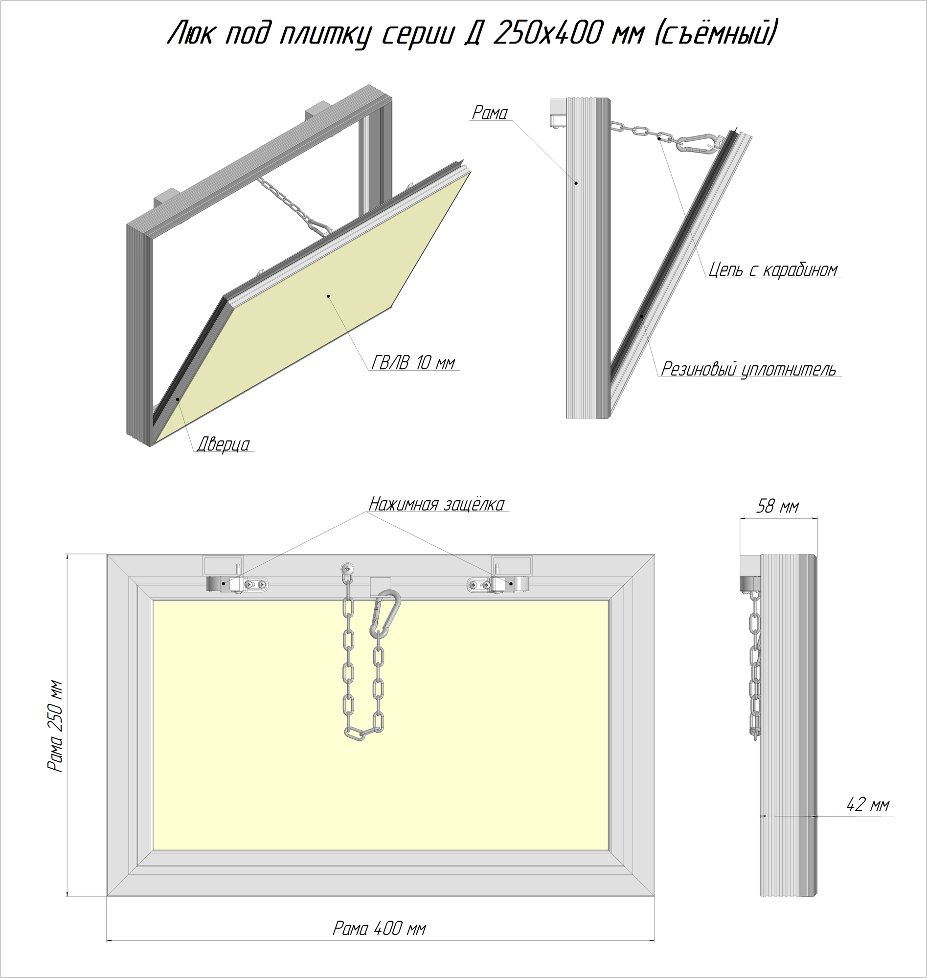 Отзывы на Люк под плитку (В/Ш) 25/40, съёмный, LYUKER, серия "Д", алюминиевый, с цепочкой и карабином