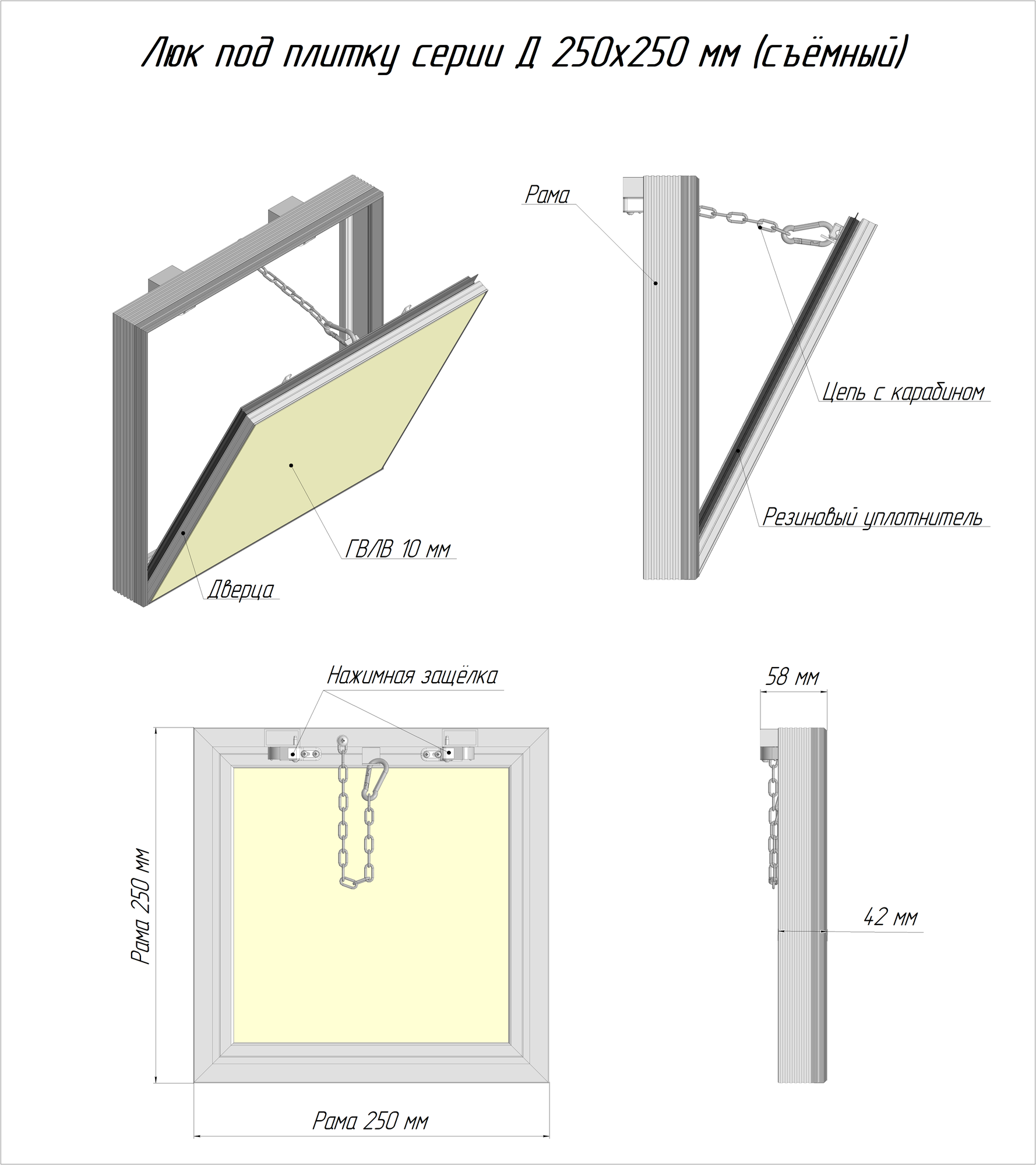 Отзывы на Люк под плитку (В/Ш) 25/25, съёмный, LYUKER, серия "Д", алюминиевый, с цепочкой и карабином