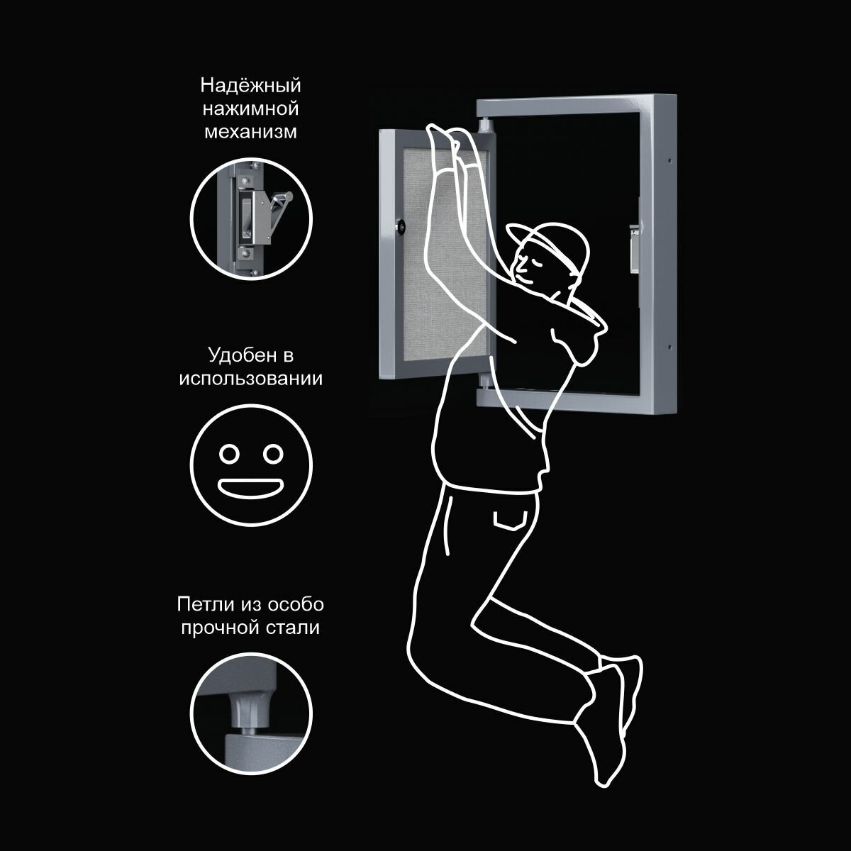 Скрытый ревизионный люк 50х100 (ШхВ) под плитку «Евроформат» Практика, нажимной, распашной