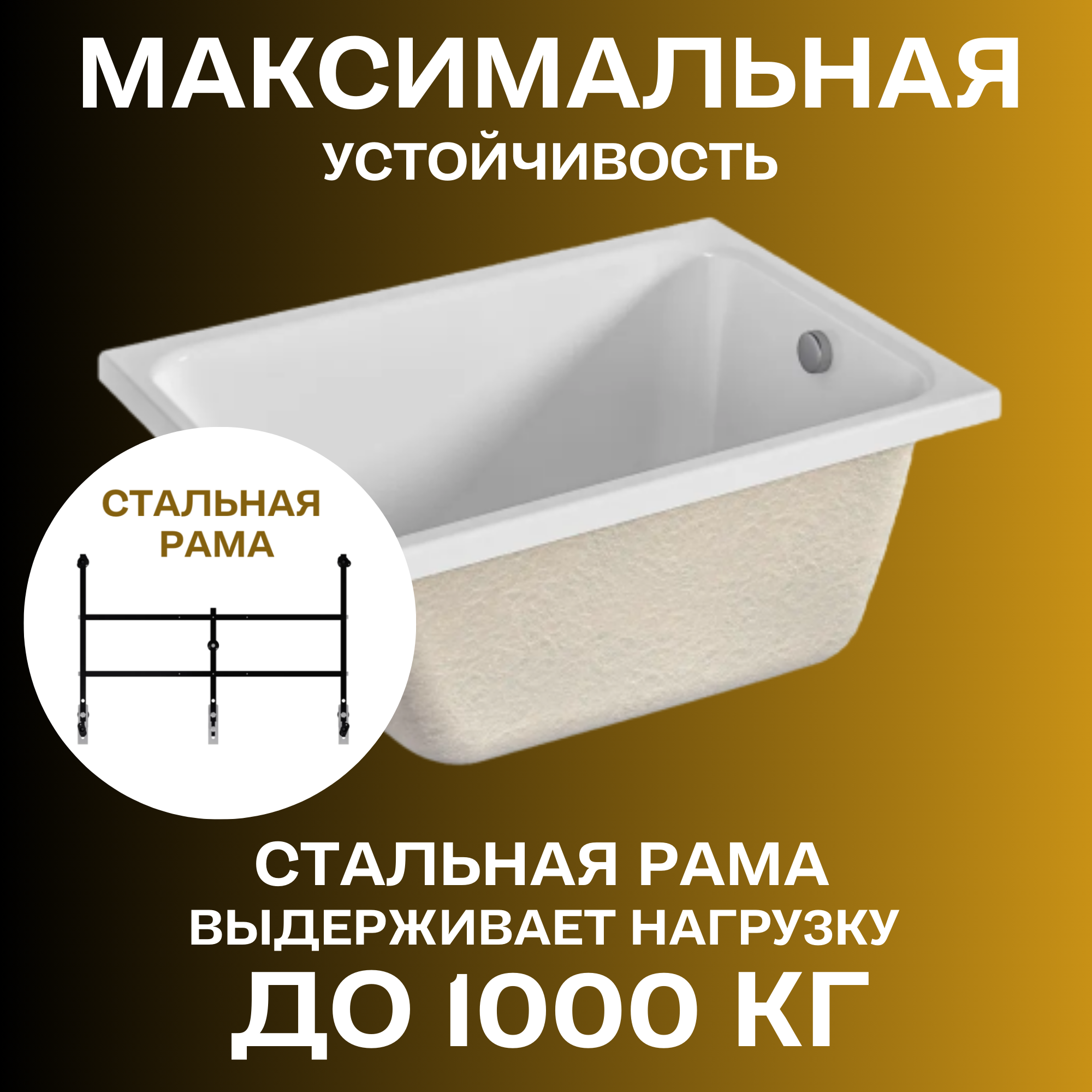 Акриловая ванна ARAGUT Кама 160х70 прямоугольная, в комплекте с каркасом, белая