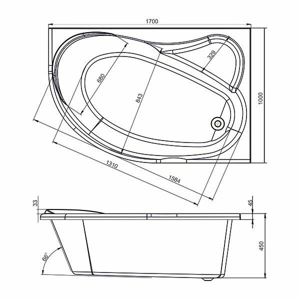 Ванна акриловая Ялта MIRSANT 160*100 белая "Premium", левая информация: