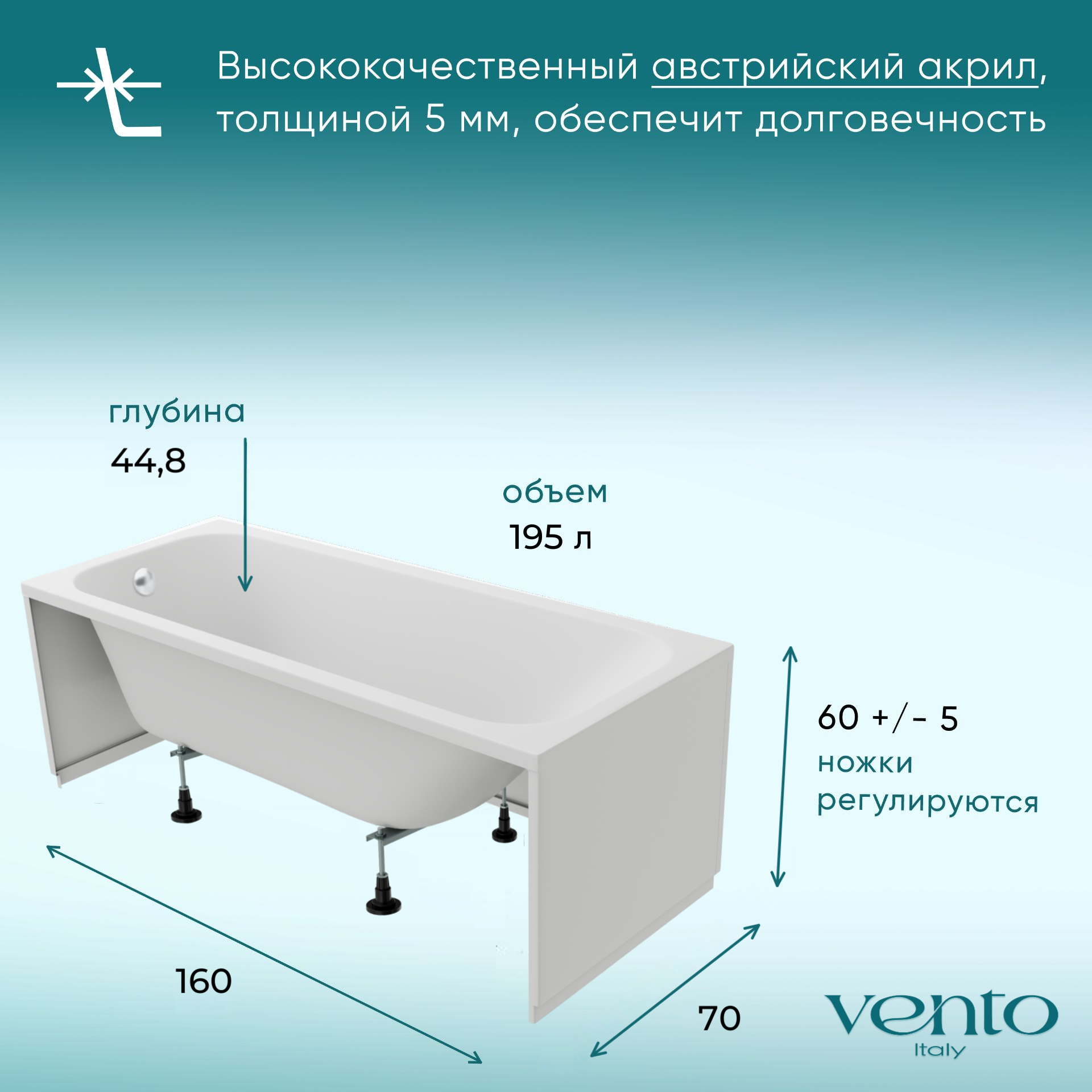 10 цен на Акриловая ванна 160х70 MITRA с ножками от бренда Vento Italy,