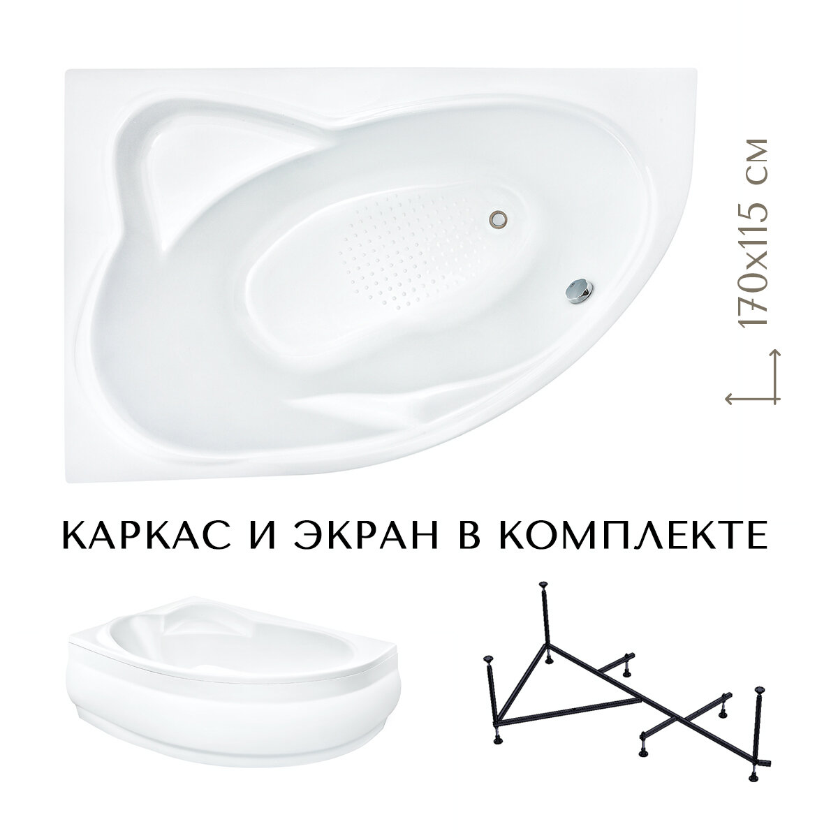 10 цен на Ванна асимметричная Мальта 170*115 левая LESAN (комплект с каркасом и лицевой панелью)