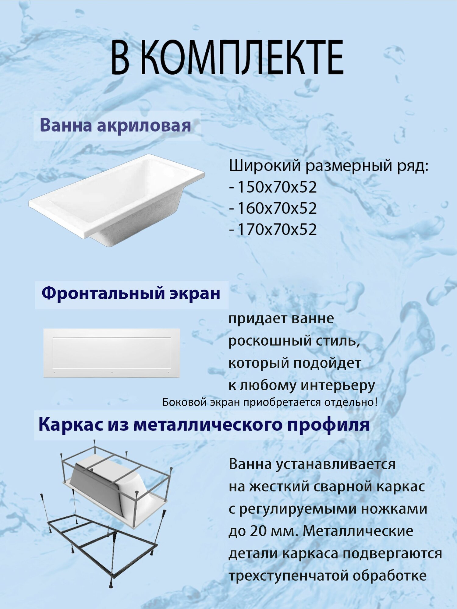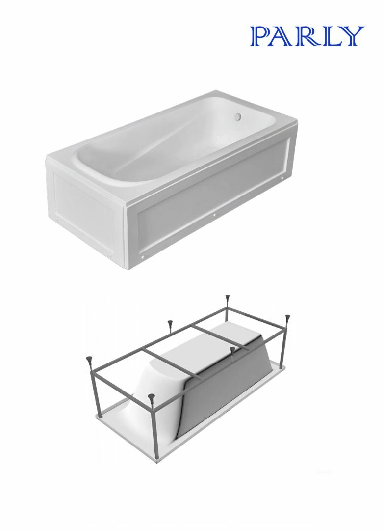 Ванна акриловая с каркасом и фронтальным экраном Parly ORTIZ (1600x700x520) приставная, белая информация: