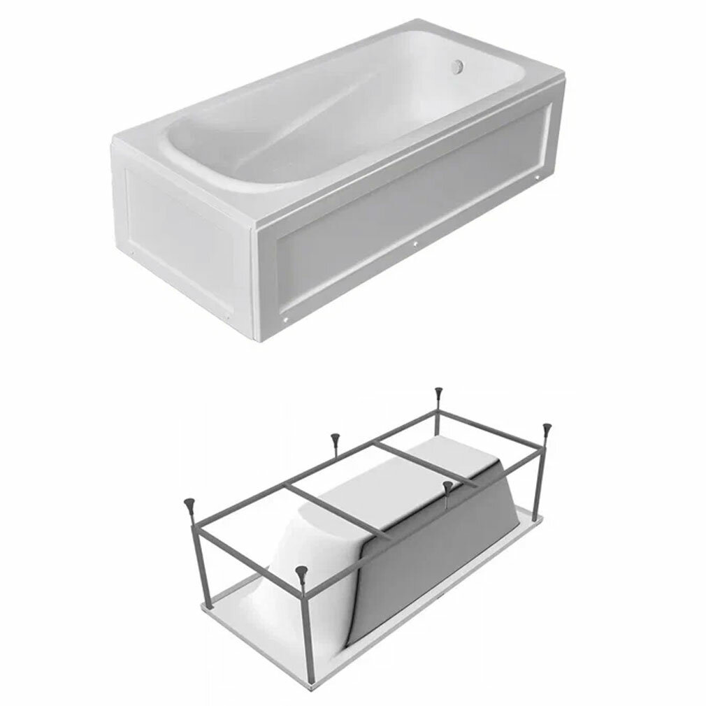 Ванна Gamma 140х70 см, акриловая, на каркасе, экран к ванне Gamma 140