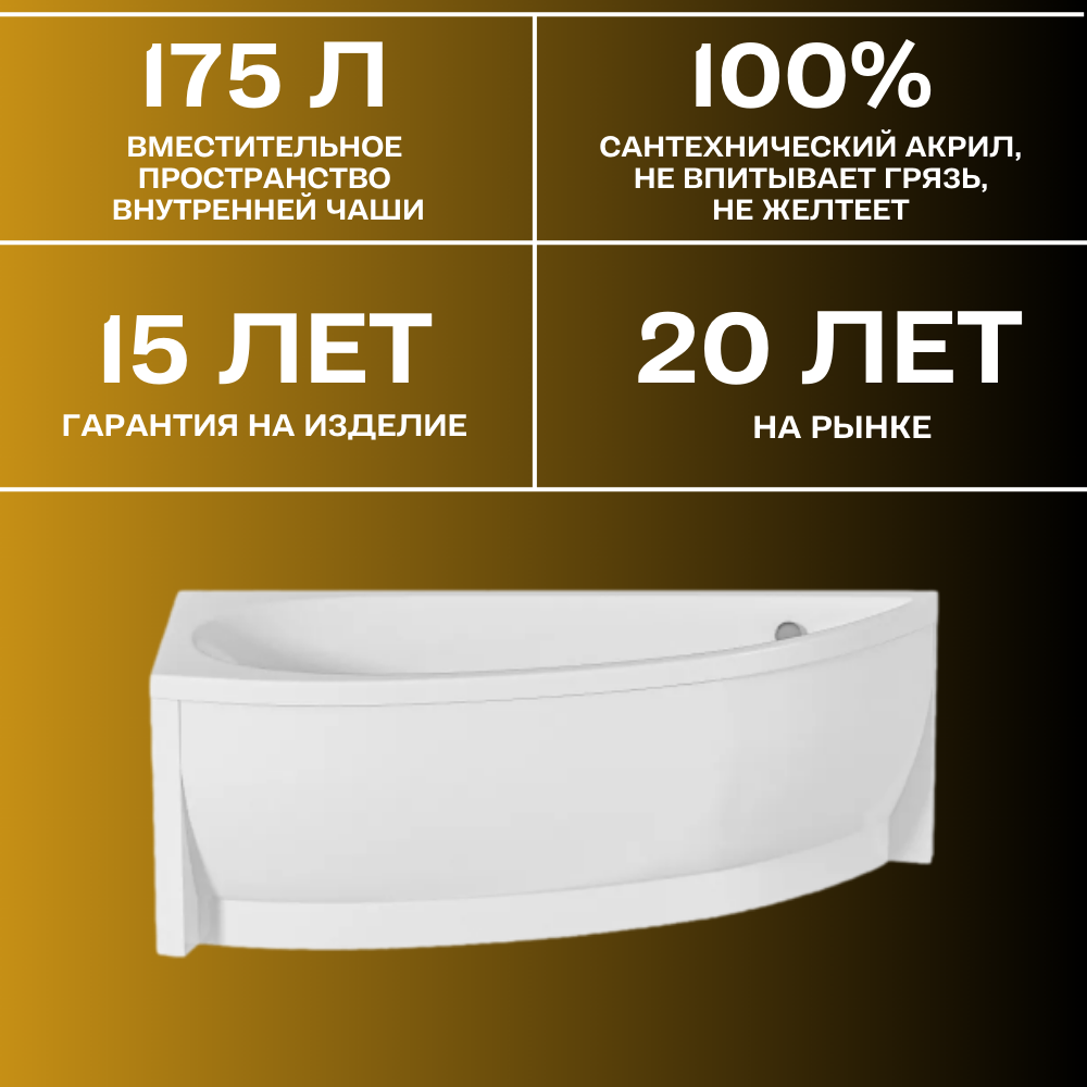 Ванна акриловая 170х75 см PICCOLO в наборе 3 в 1: Ванна левосторонняя, металлический каркас, слив-перелив 01пк1775лкс2+ информация: