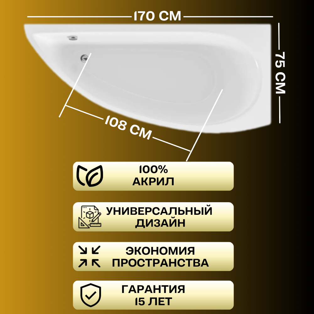 Ванна акриловая 170х75 см ассиметричная левый угол 1Marka PICCOLO 01пк1775л 27 028 ₽