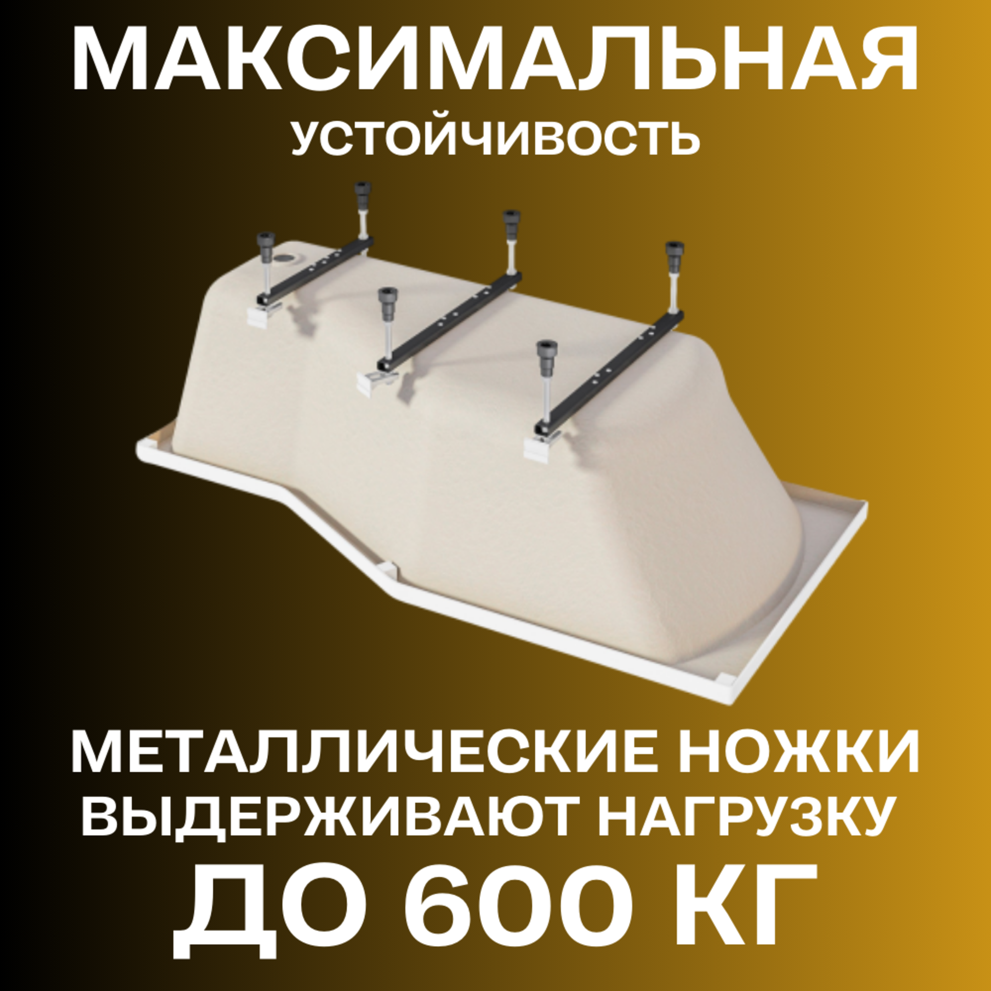 Ванна акриловая 150х75 см Convey комплект 4в1: Ванна, металлические ножки, фронтальная панель, слив-перелив 01кон1575лкп информация: