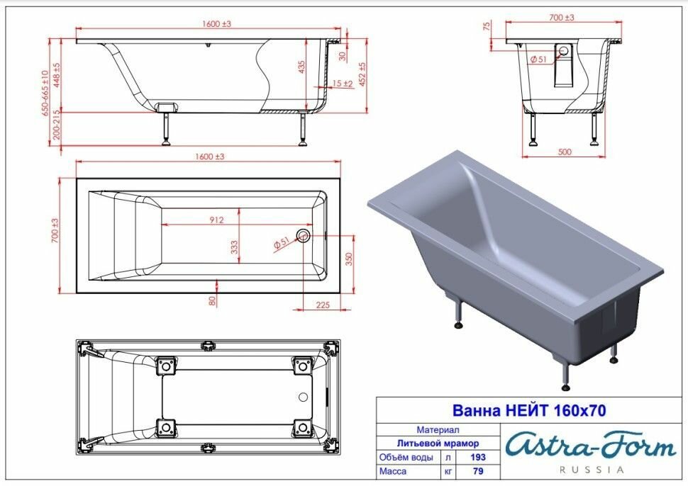 Отзывы на Ванна из литьевого мрамора Astra-Form Нейт 155х70 см (белая, глянцевая)