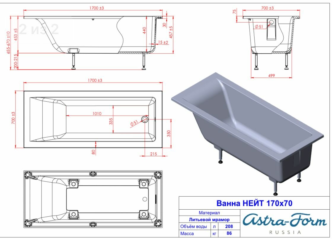 Отзывы на Ванна из литьевого мрамора Astra-Form Нейт 165х70 см (белая, глянцевая)