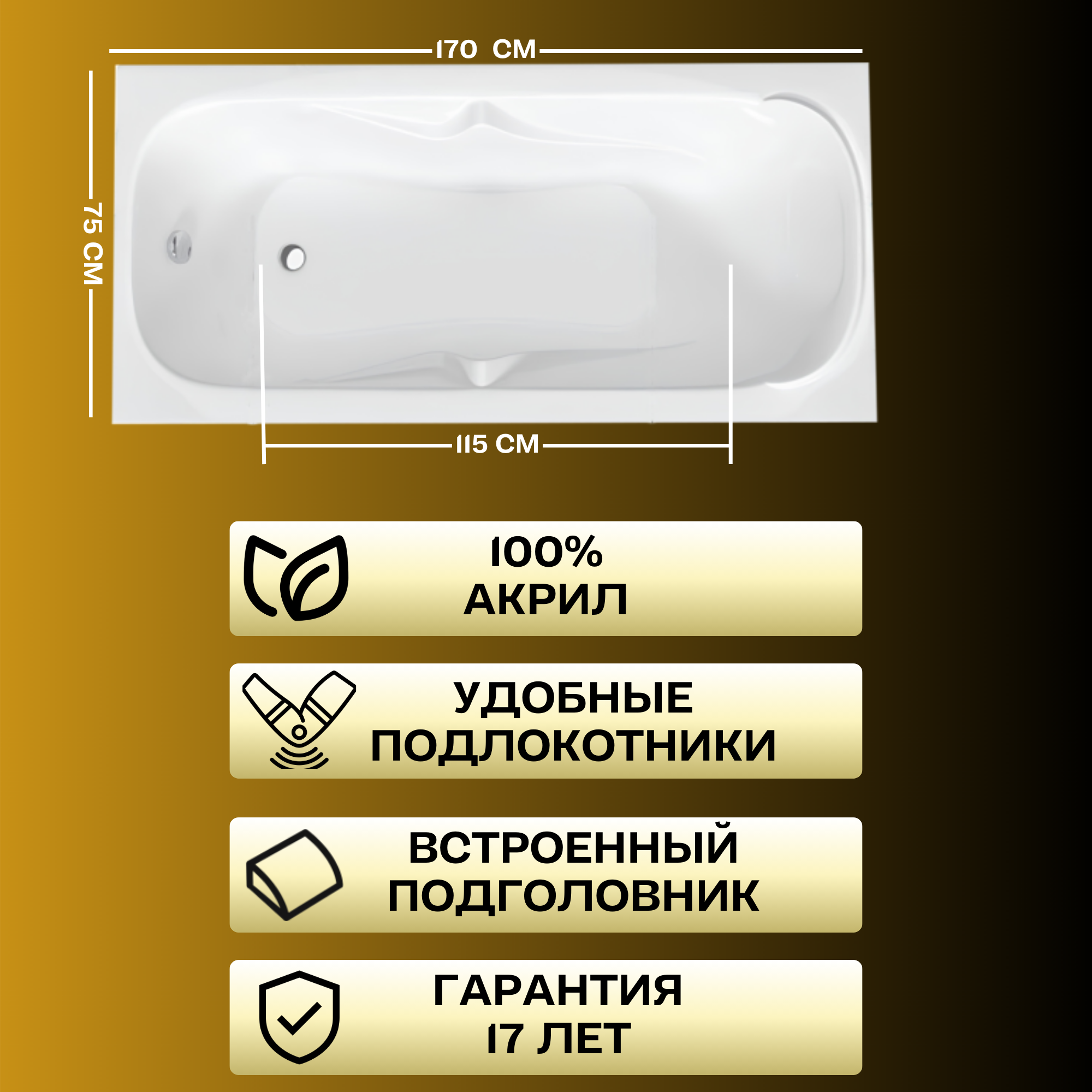 Ванна акриловая 170х75 см DIPSA комплект 4в1: Акриловая ванна, фронтальная панель, рама, слив-перелив 12017894кп информация: