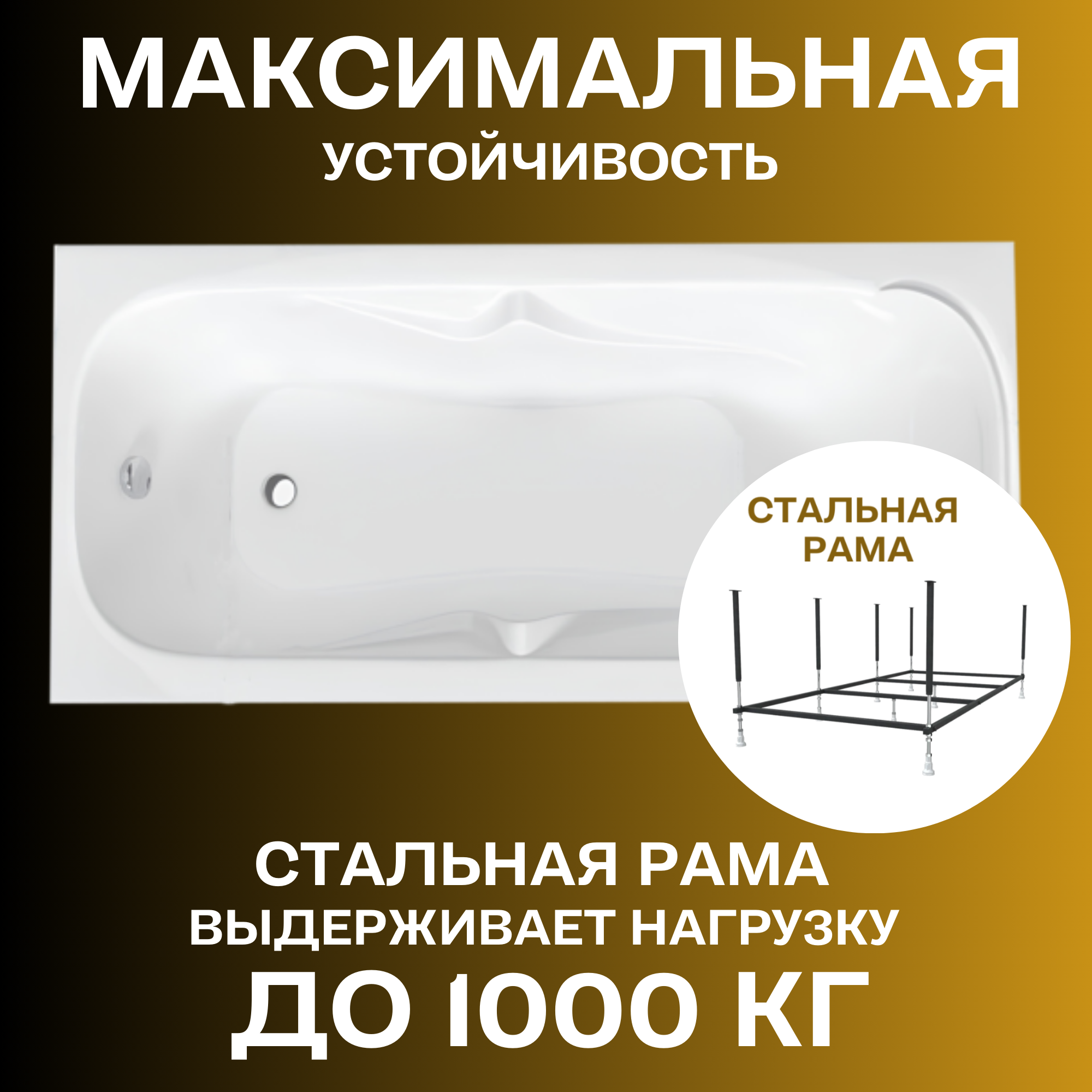Акриловая ванна ARAGUT Кама 160х70 прямоугольная, в комплекте с каркасом, белая