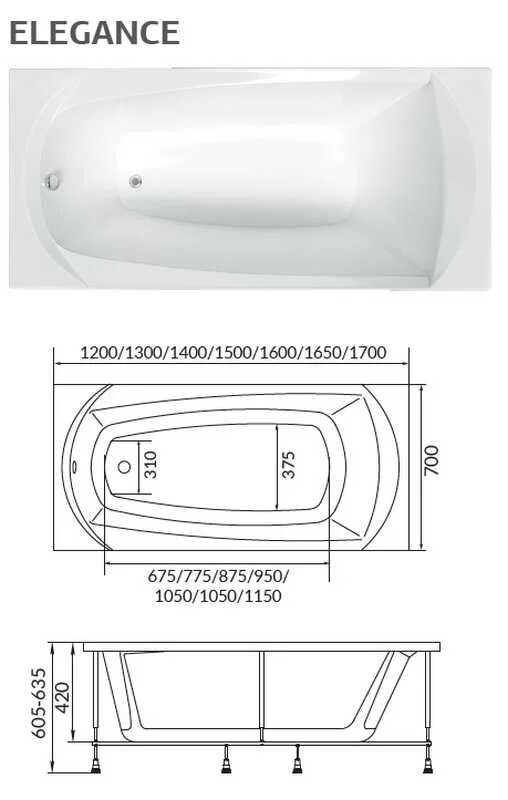 Ванна акриловая 165х70 см ELEGANCE комплект 4в1: Ванна, каркас, панель фронтальная, слив-перелив 01эл16570кп 39 600 ₽