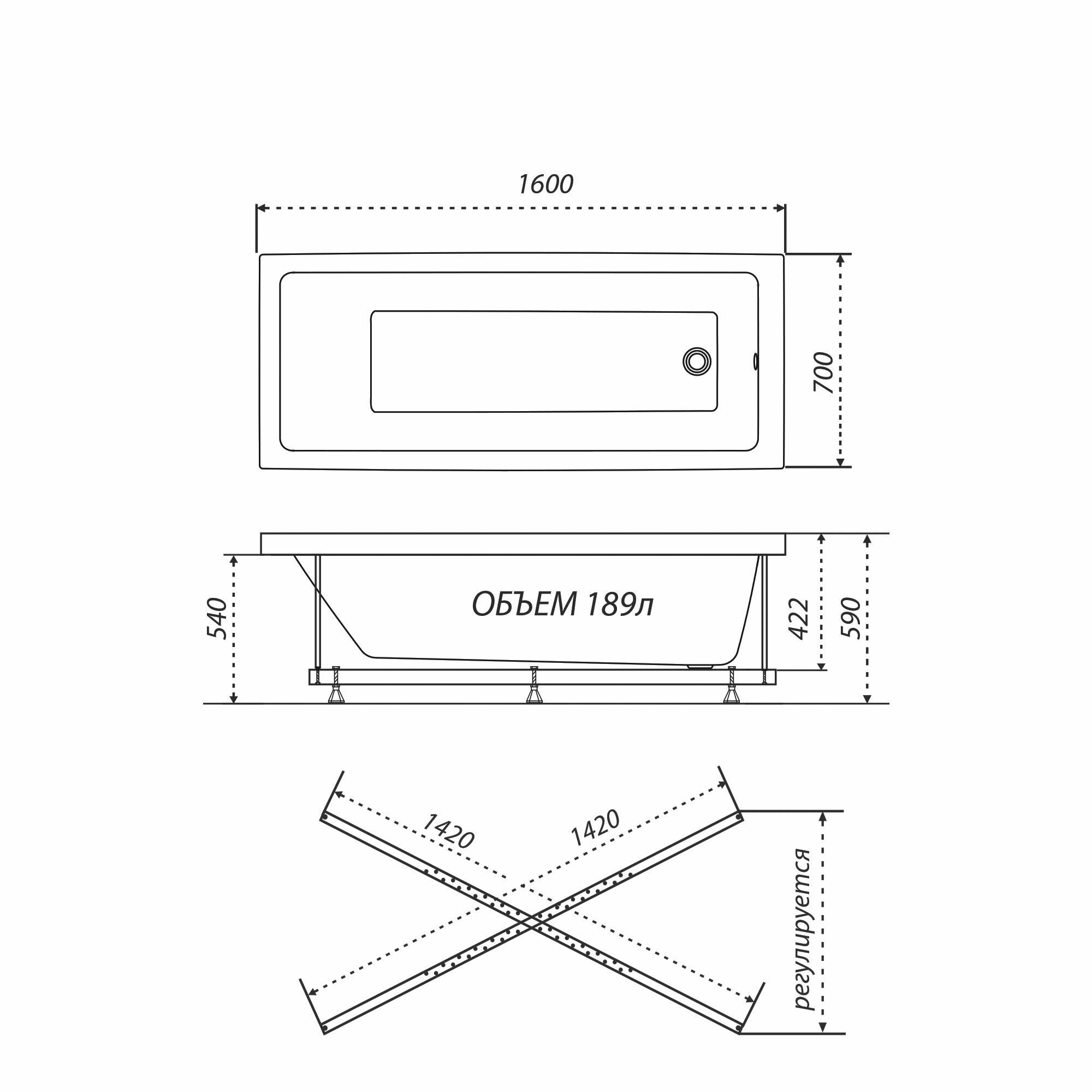 Ванна акриловая Albico Rica 160х70 в комплекте с ножками информация: