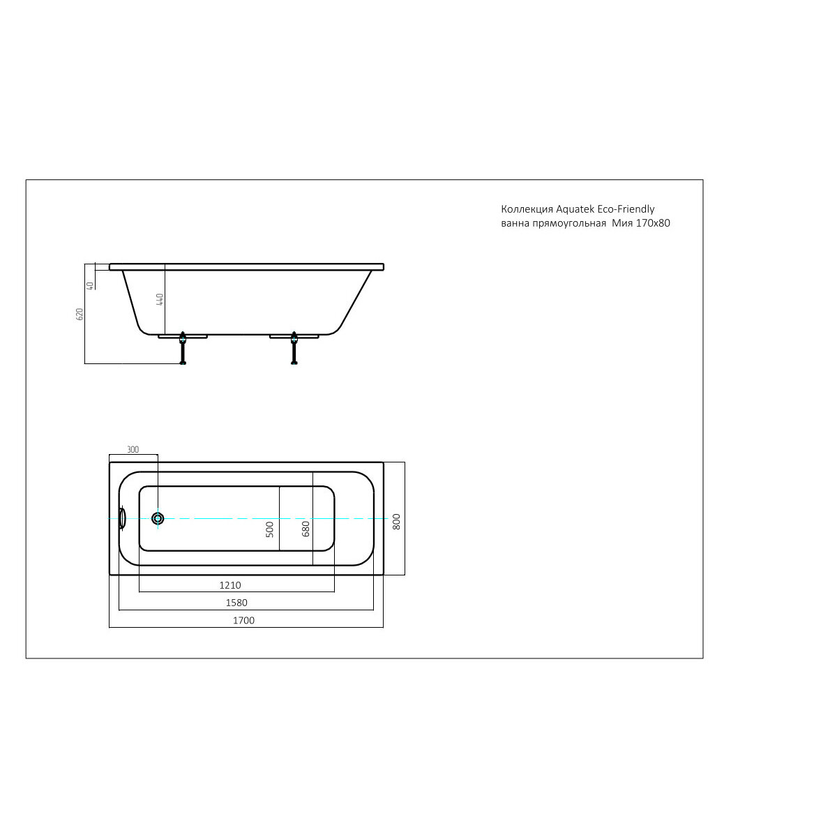Ванна акриловая Aquatek Мия прямоугольная 170х80 см MIY170-0000032 Белый информация: