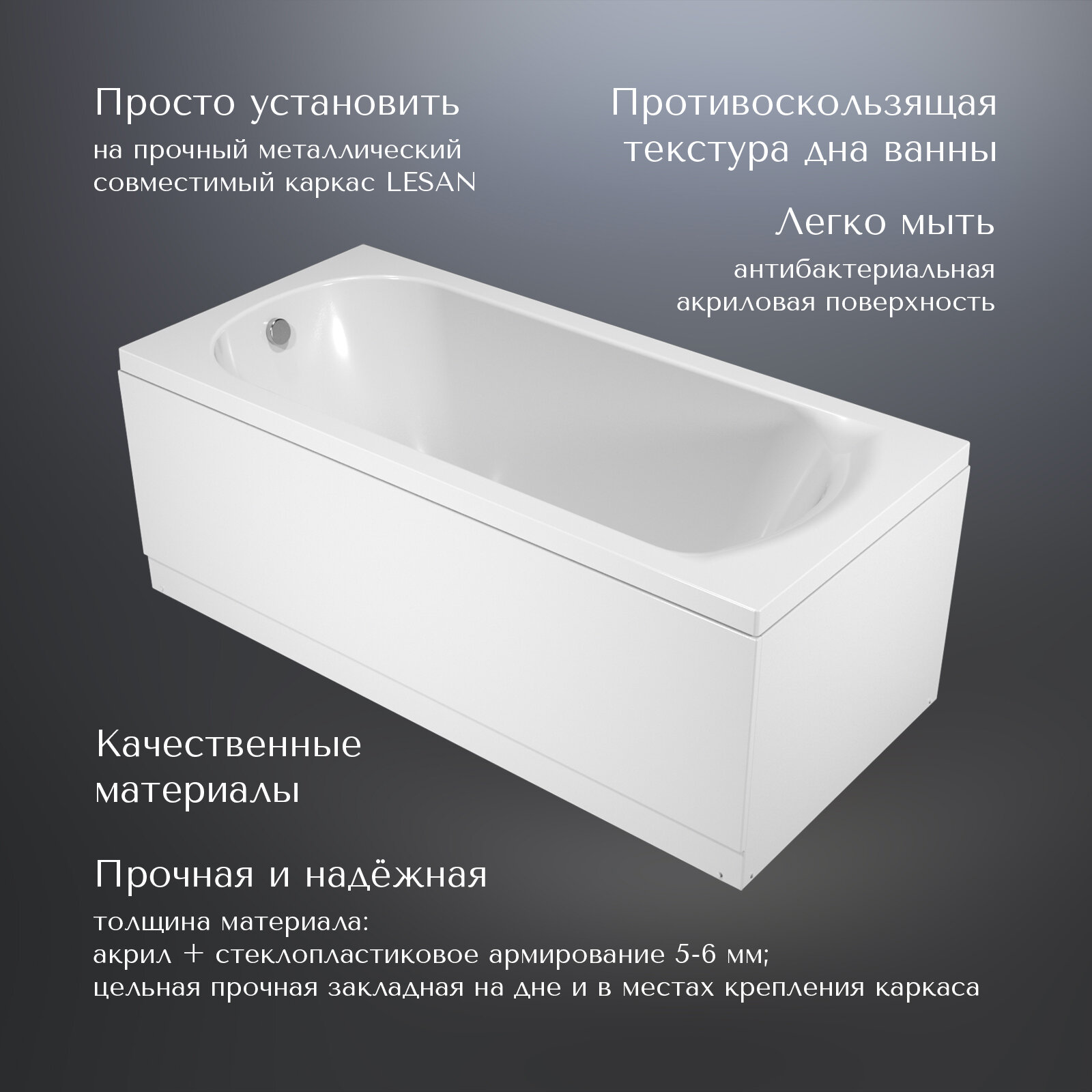 Акриловая ванна прямоугольная 150*70 Маврикий LESAN (без каркаса) информация: