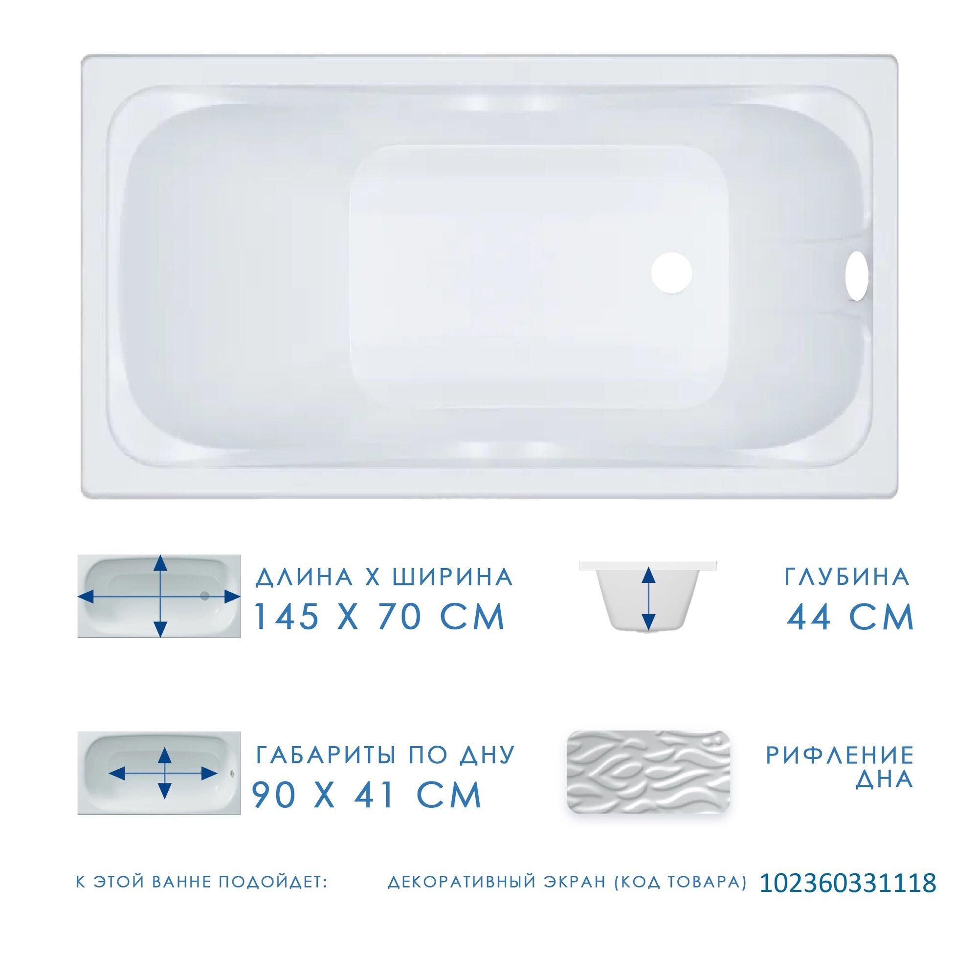 Ванна акриловая Triton Стандарт 145х70 Экстра в комплекте с каркасом информация: