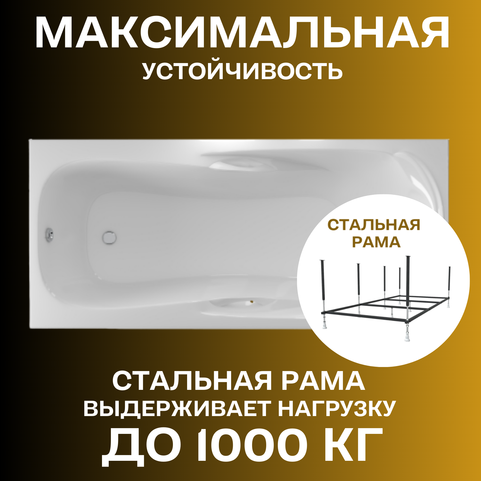 Акриловая ванна ARAGUT Кама 160х70 прямоугольная, в комплекте с каркасом, белая