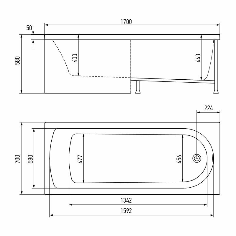 TIMO MIKA1770 Комплект Акриловая ванна 170*70*58на каркасе со сливом-переливом и фронтальной панелью информация: