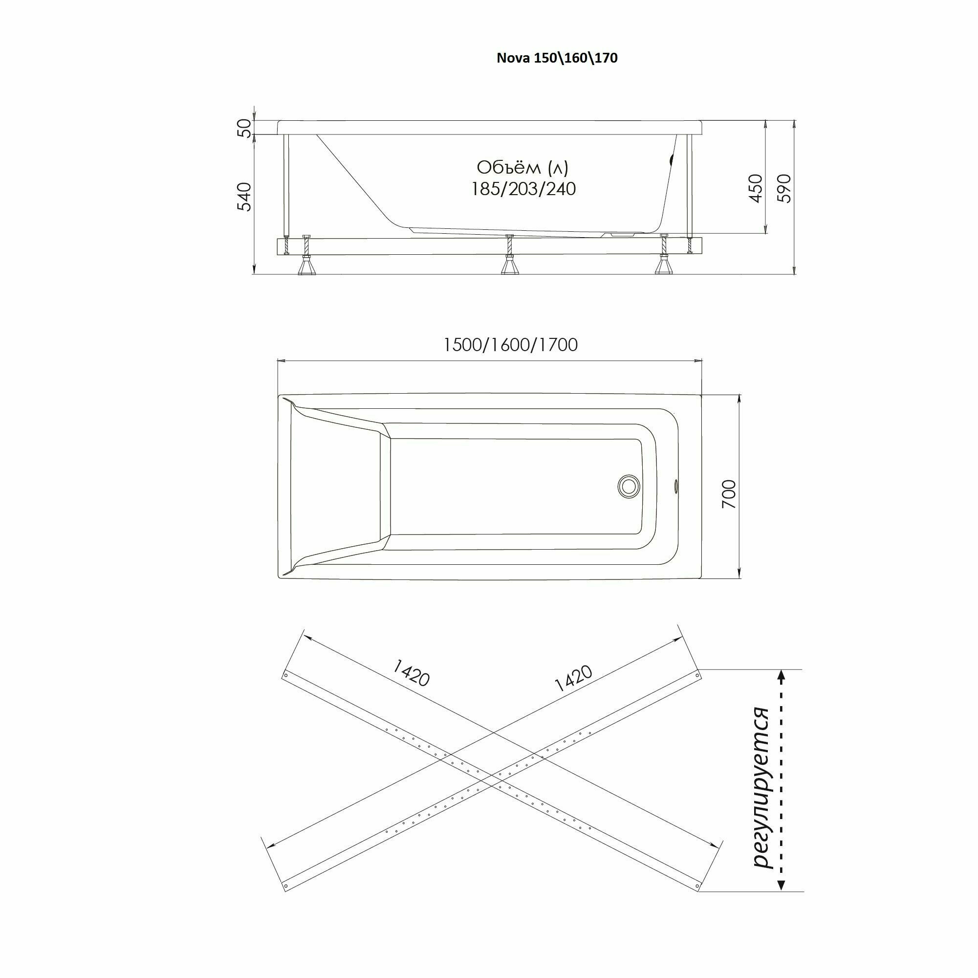 Ванна акриловая Albico Nova 150х70 в комплекте с ножками информация: