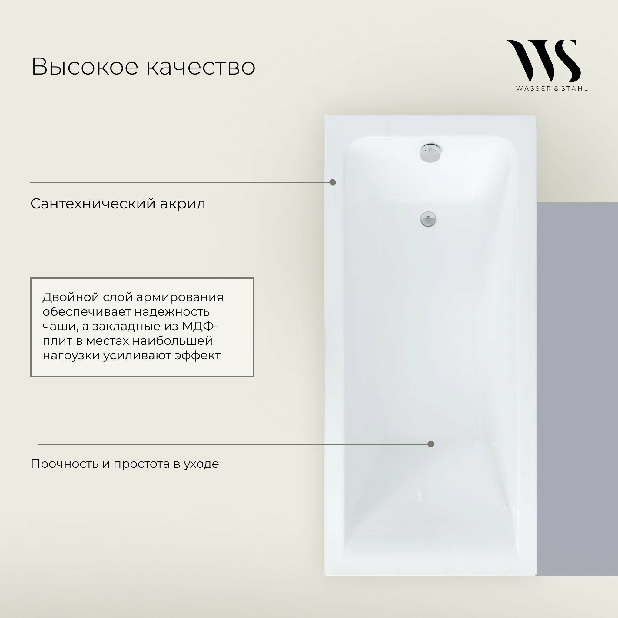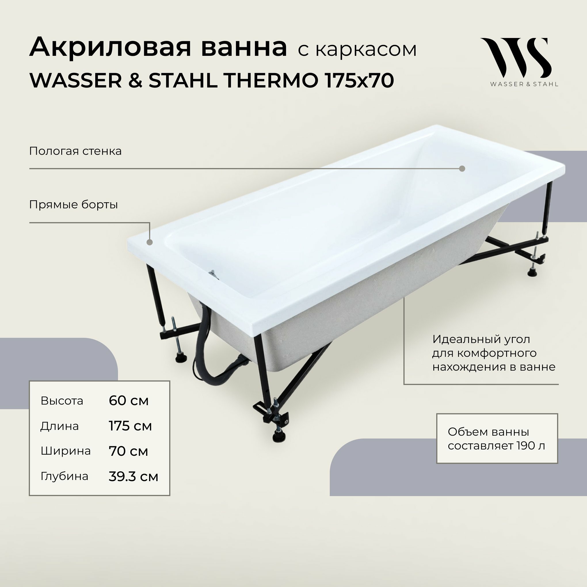 Акриловая ванна WASSER & STAHL THERMO 175x70 с каркасом информация: