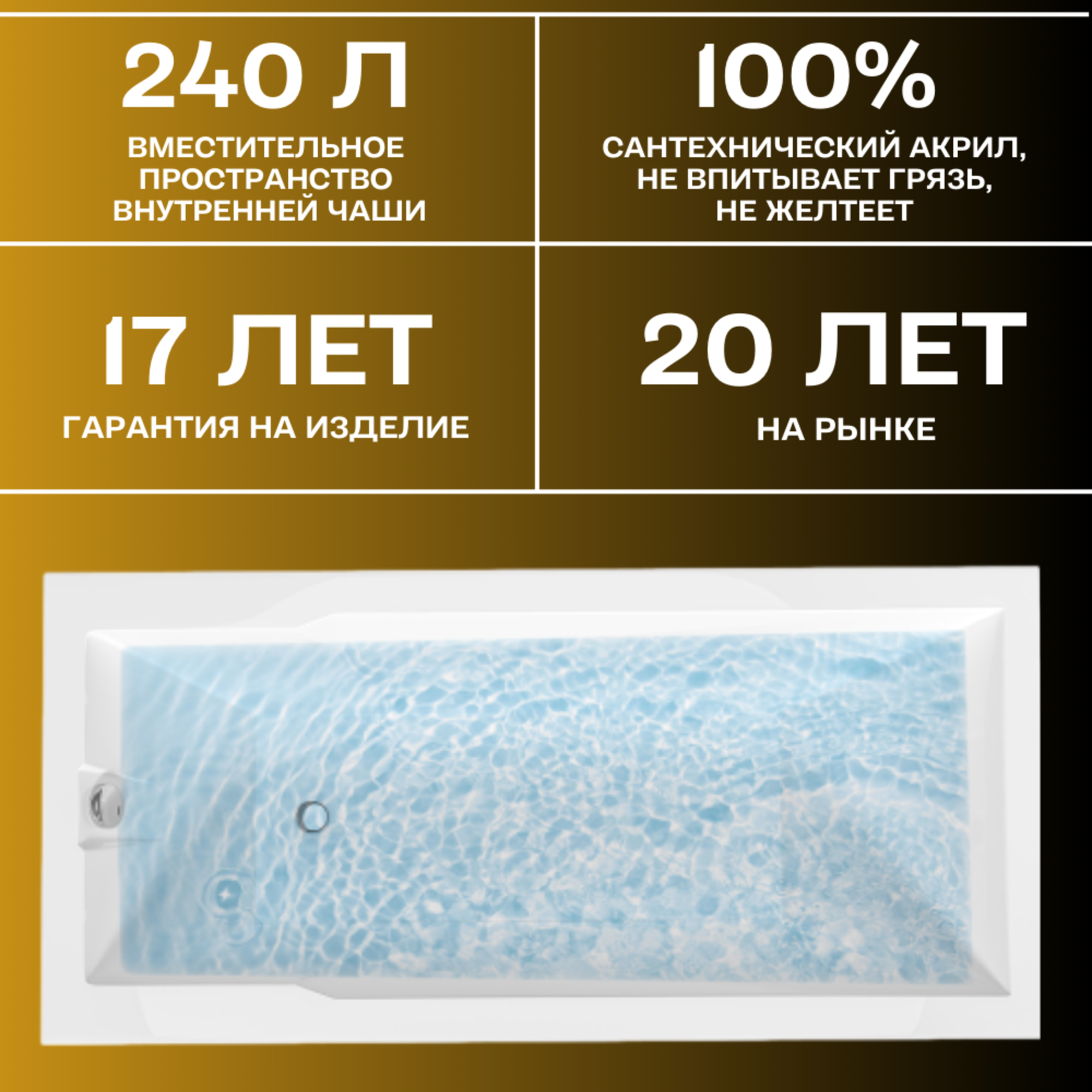Отзывы на Ванна акриловая 190х90 см RAGUZA в наборе 3в1: Прямоугольная ванна, металлический каркас, слив-перелив 01ра1990кс2+
