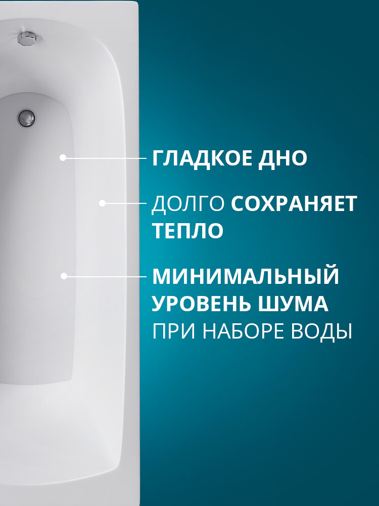 Ванна акриловая прямоугольная Benneri Como 170x70, без ножек, без экрана 15 155 ₽