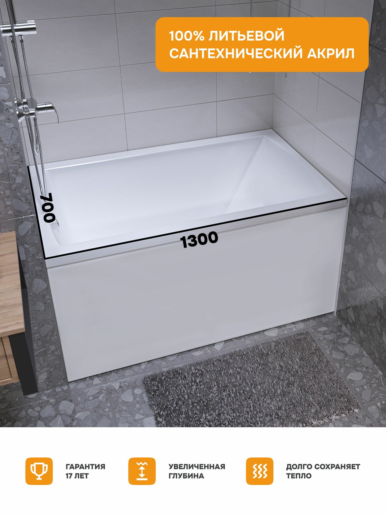 Ванна акриловая 130х70 см KANE Прямоугольная белая, 100% сантехнический акрил, MODULEASY 01кейн1370 26 072 ₽