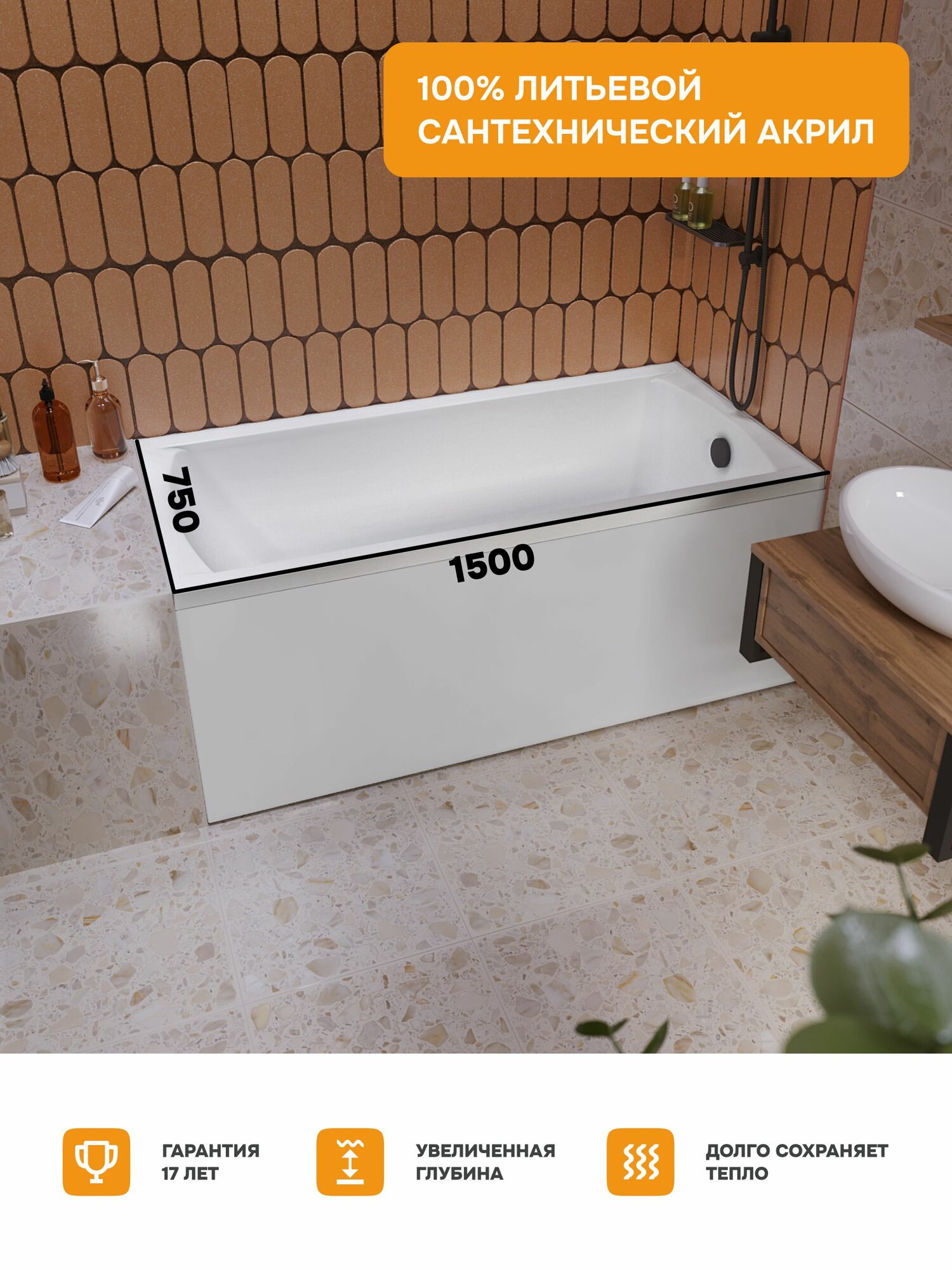 Ванна акриловая 150х75 см KANE Прямоугольная белая, 100% сантехнический акрил, MODULEASY 01кейн1575 29 075 ₽
