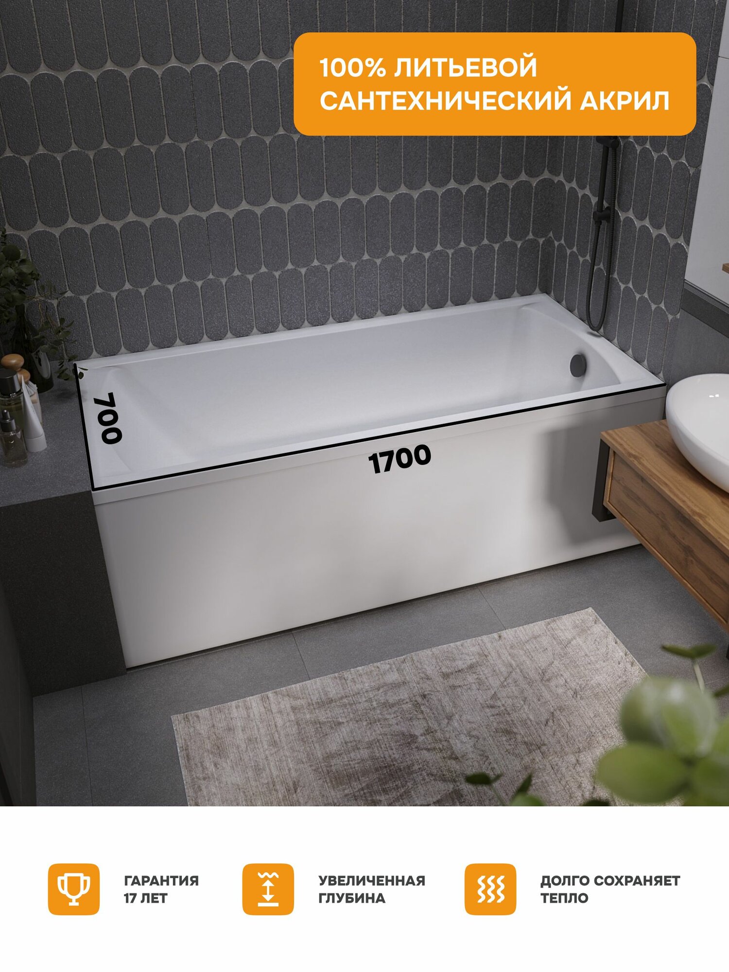 Отзывы на Ванна акриловая 170х70 см KANE MODULEASY в комплекте 4в1: Прямоугольная ванна, фронтальная панель, стальная рама, слив-перелив 01кейн1770кп