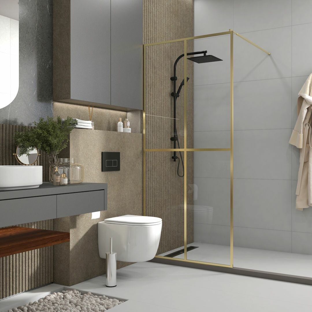 Отзывы на Душевая перегородка 90x200 стекло прозрачное закаленное профиль золото матовый Teymi Helmi T00304