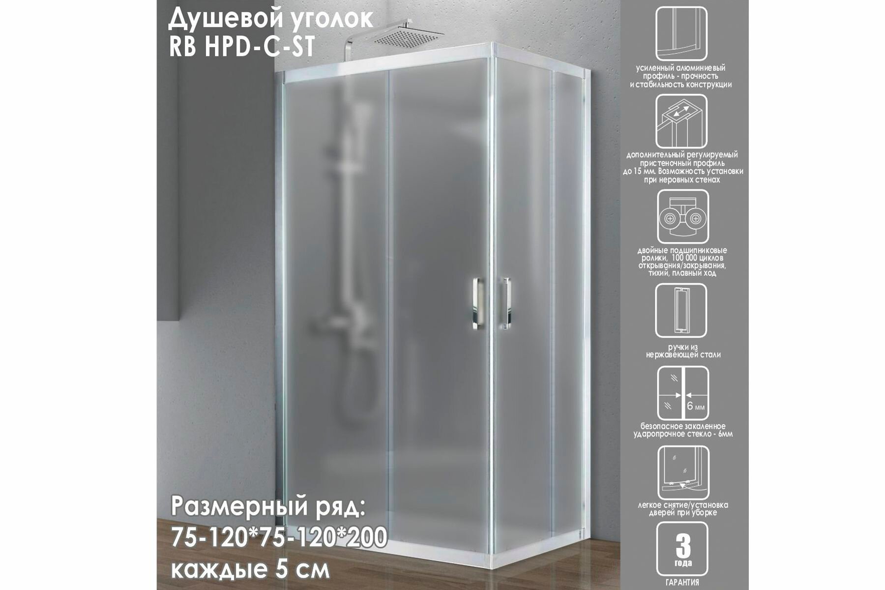 Душевой уголок RB 95х120х200 стекло матовое 6мм профиль сатин информация: