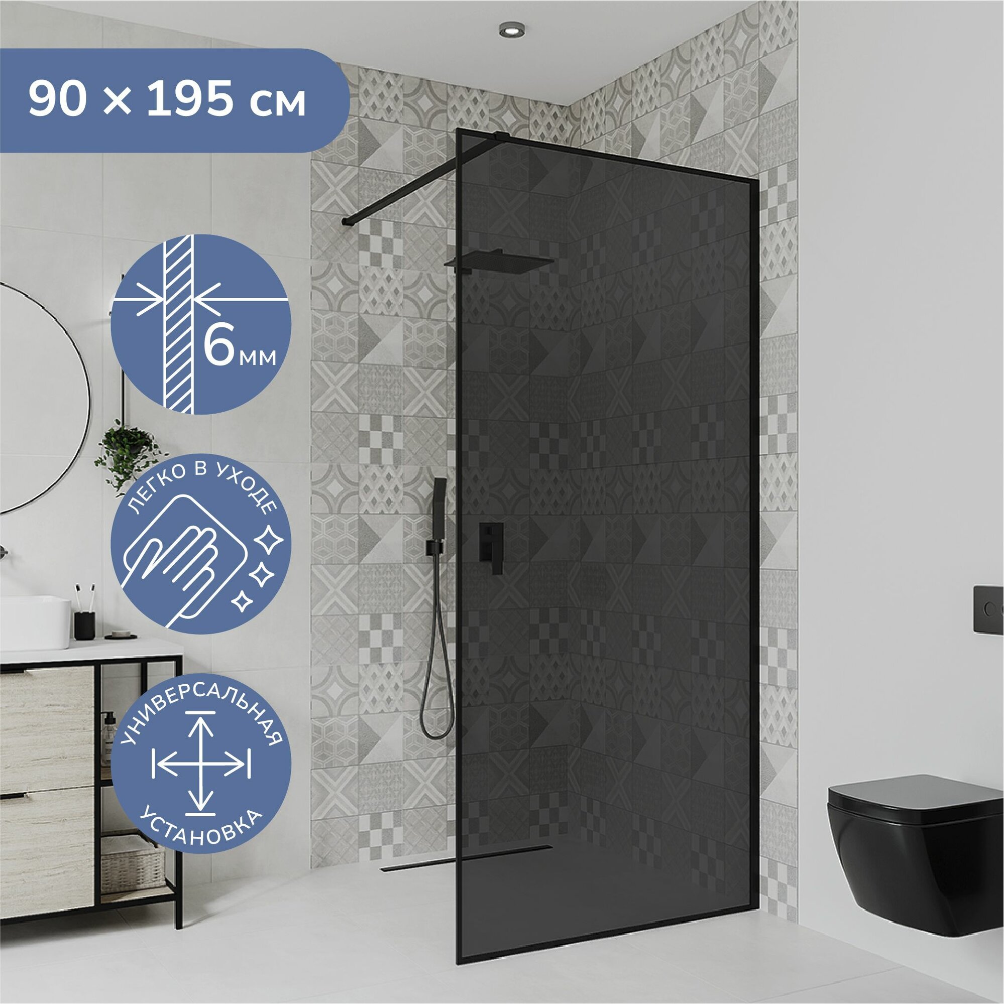 Отзывы на Душевая перегородка 90х195 см. Ulitka Walk In Prisma стекло тонированное, профиль черный