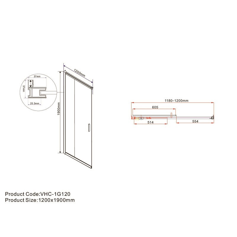 Душевой уголок Vincea Garda, 120 x 120 см, прямоугольный, двери раздвижные, стекло прозрачное, профиль хром, VSS-1G1212CL информация: