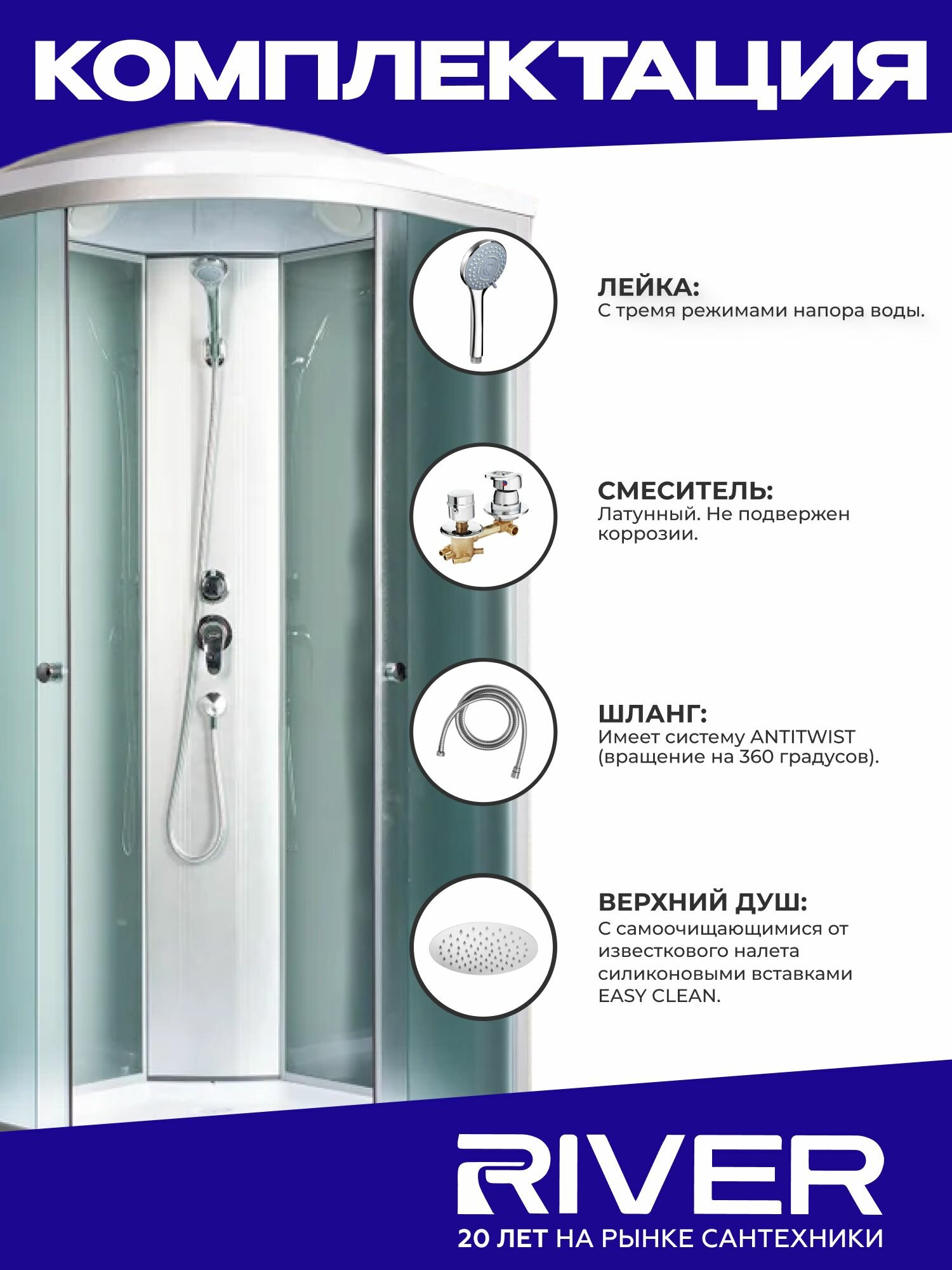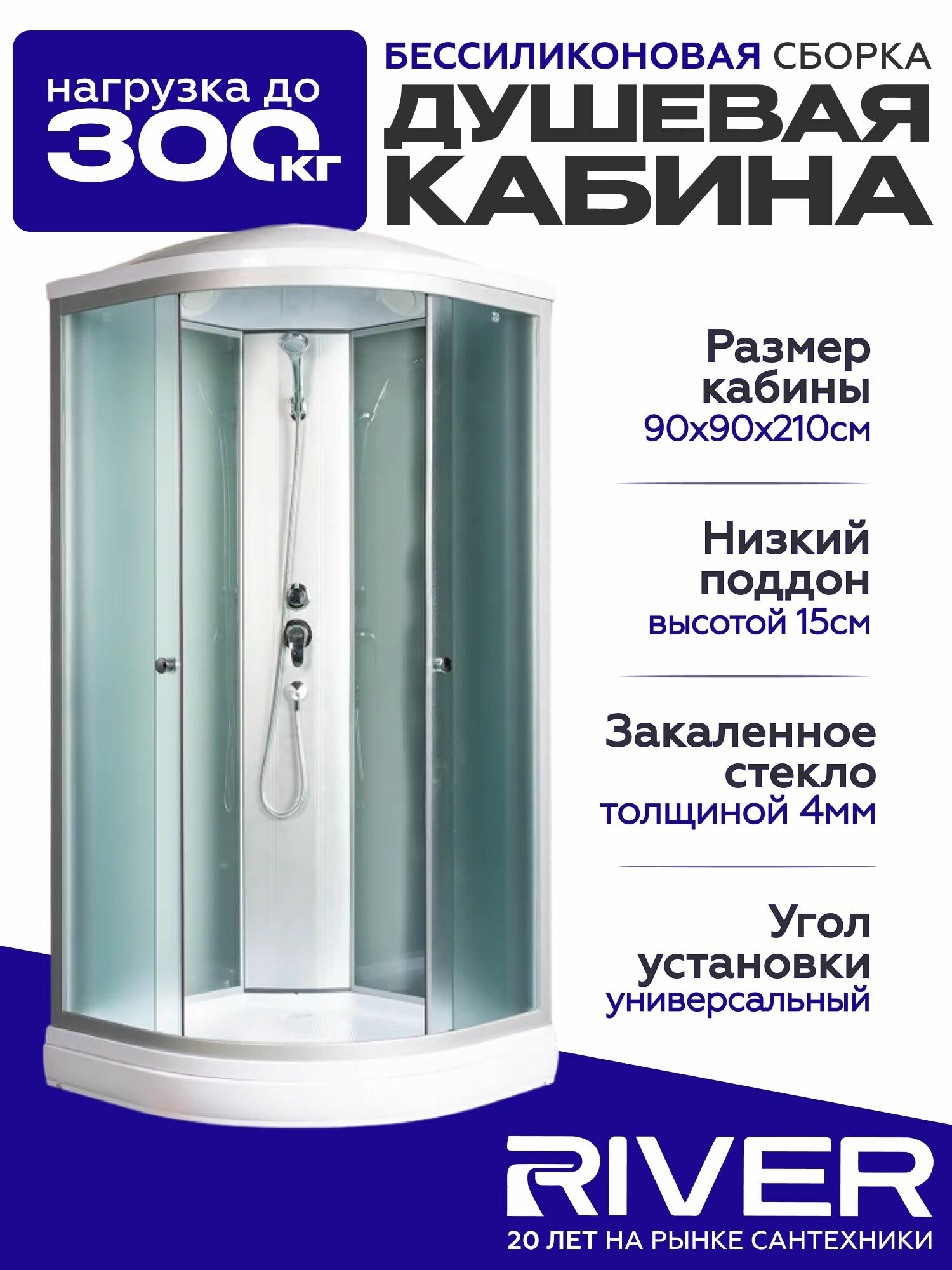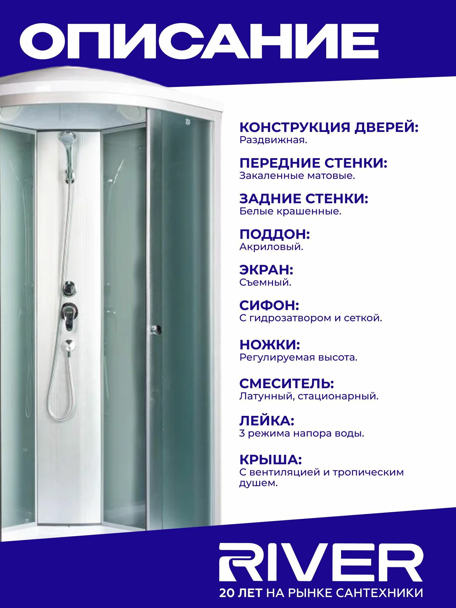 Душевая кабина River NARA LIGHT (90x90) низкий поддон, стекло матовое, универсальная информация: