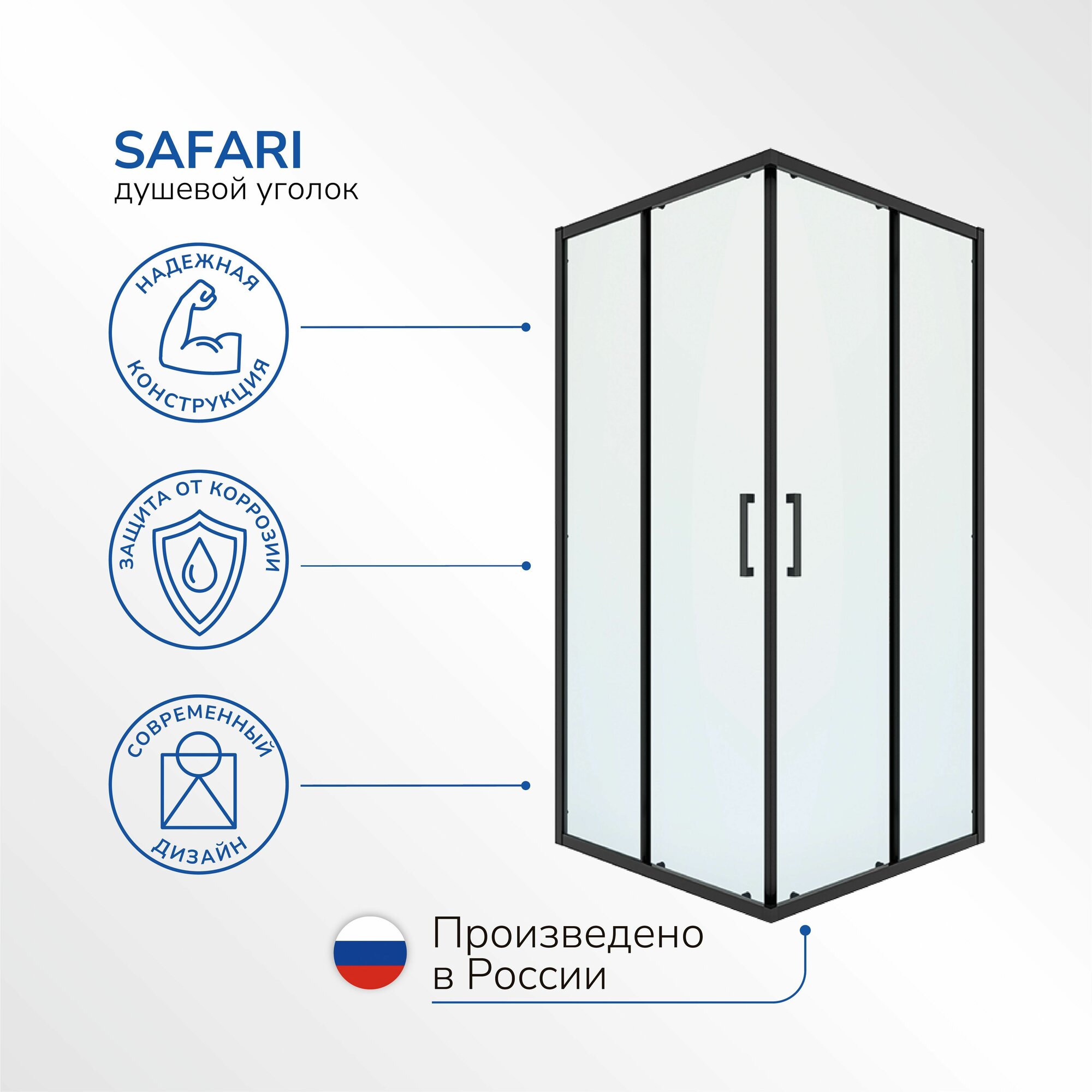 Душевой уголок 80х80 см, Ulitka Safari стекло прозрачное 6 мм профиль черный информация: