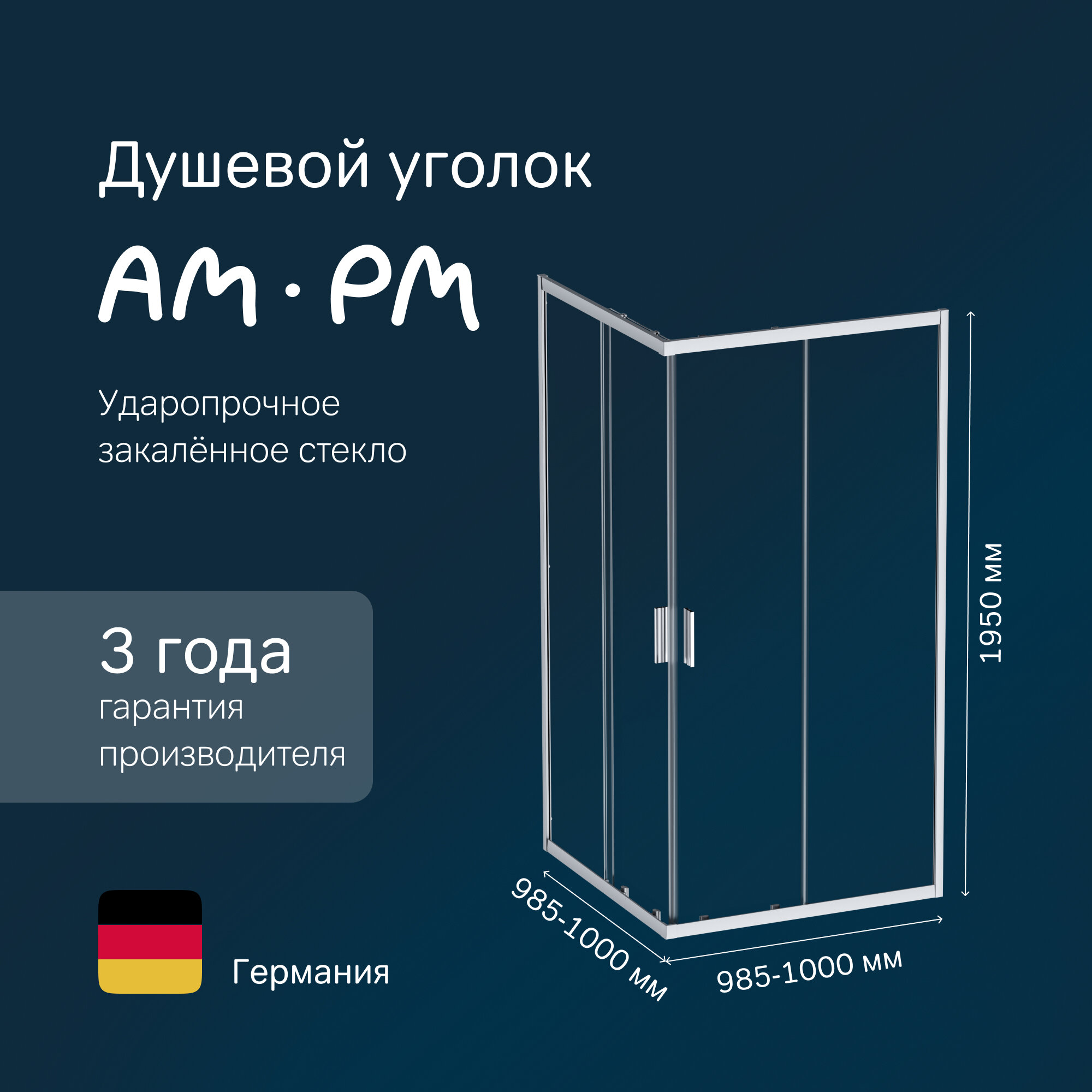 Отзывы на Душевой уголок AM.PM Gem ограждение 100x100, раздвижное открывание, профиль хром матовый, стекло прозрачное, без поддона