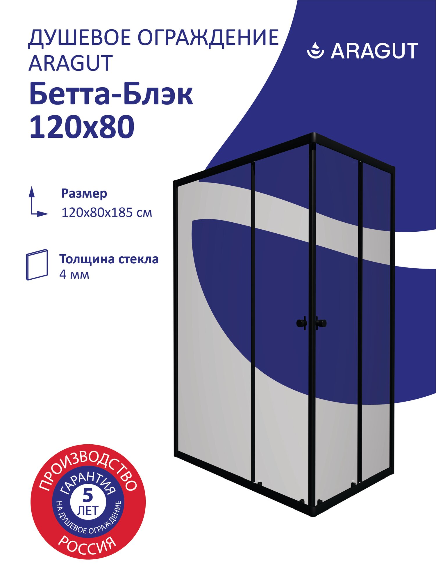 Душевой уголок ARAGUT Бетта-Блэк 120х80, черный профиль, без поддона, прямоугольный информация: