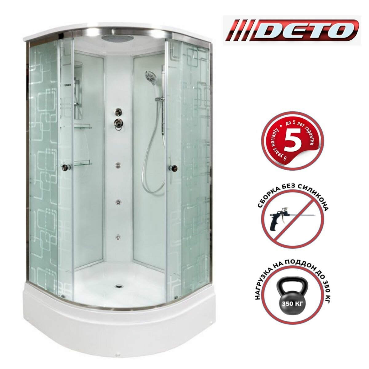 10 цен на Душевая кабина Deto EM2710 (100x100x220) средний поддон, стекло узорчатое, с гидромассажем