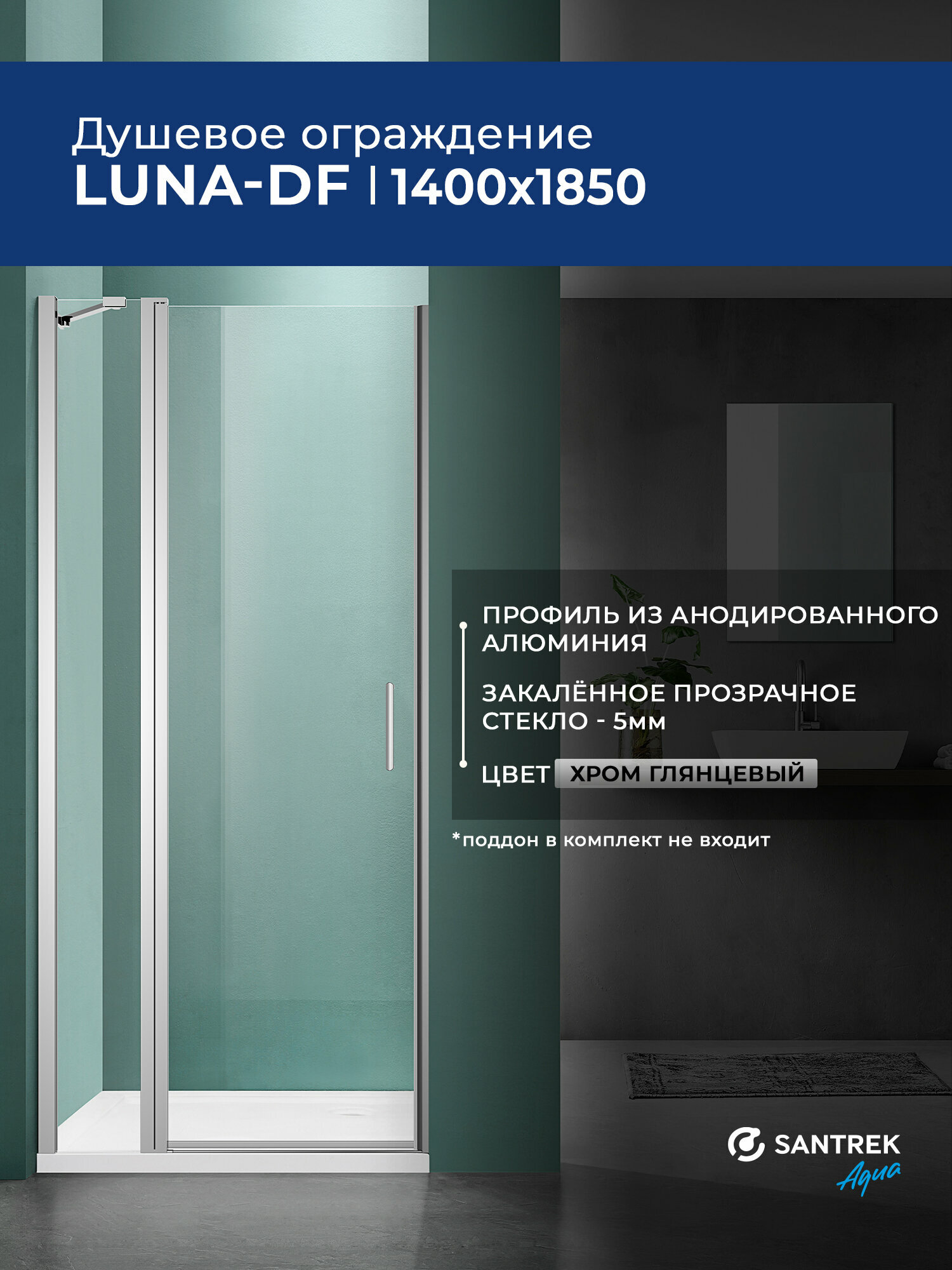 Душевое ограждение дверь в нишу SANTREK Luna-DF-1400-C-Chrome 1400*1850 стекло Прозр. 5мм, профиль Хром информация: