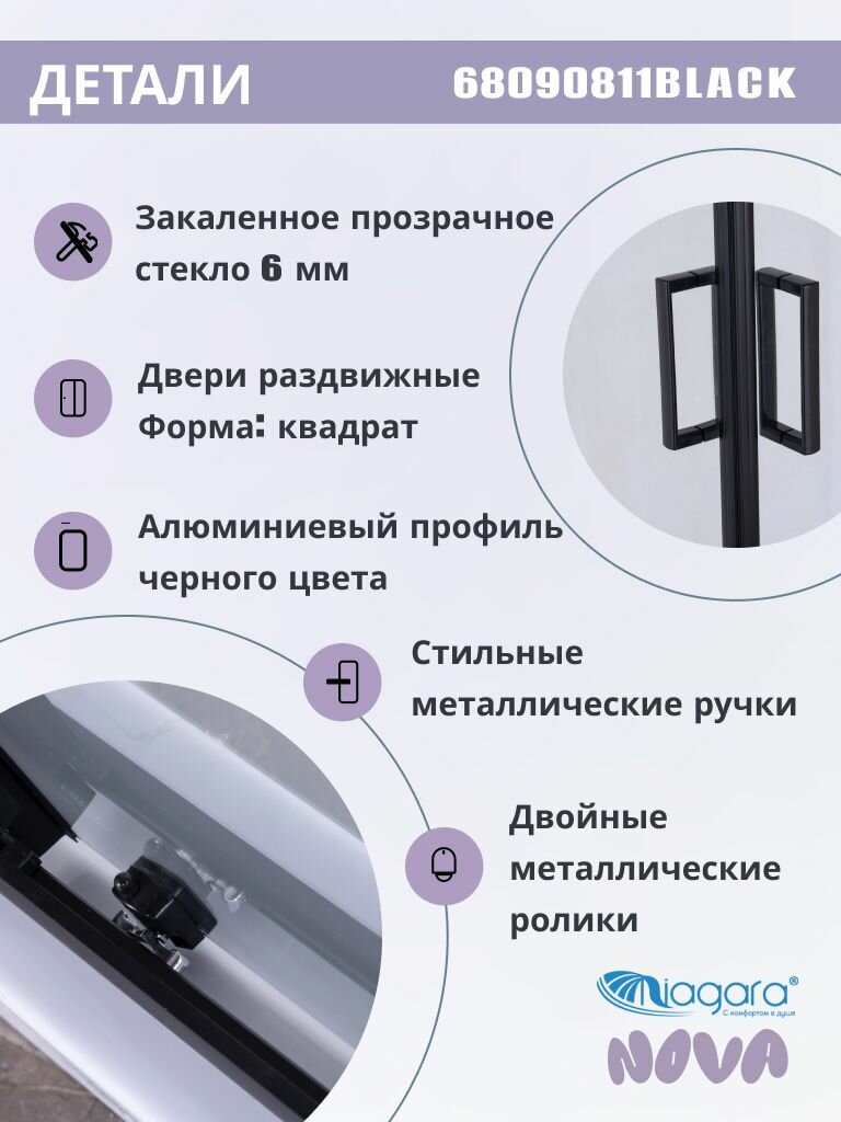 Душевое ограждение Niagara Nova NG-6809-08ВLACK (100х100х195) квадрат, черный, двери раздвижные, стекло прозрачное,1 место информация: