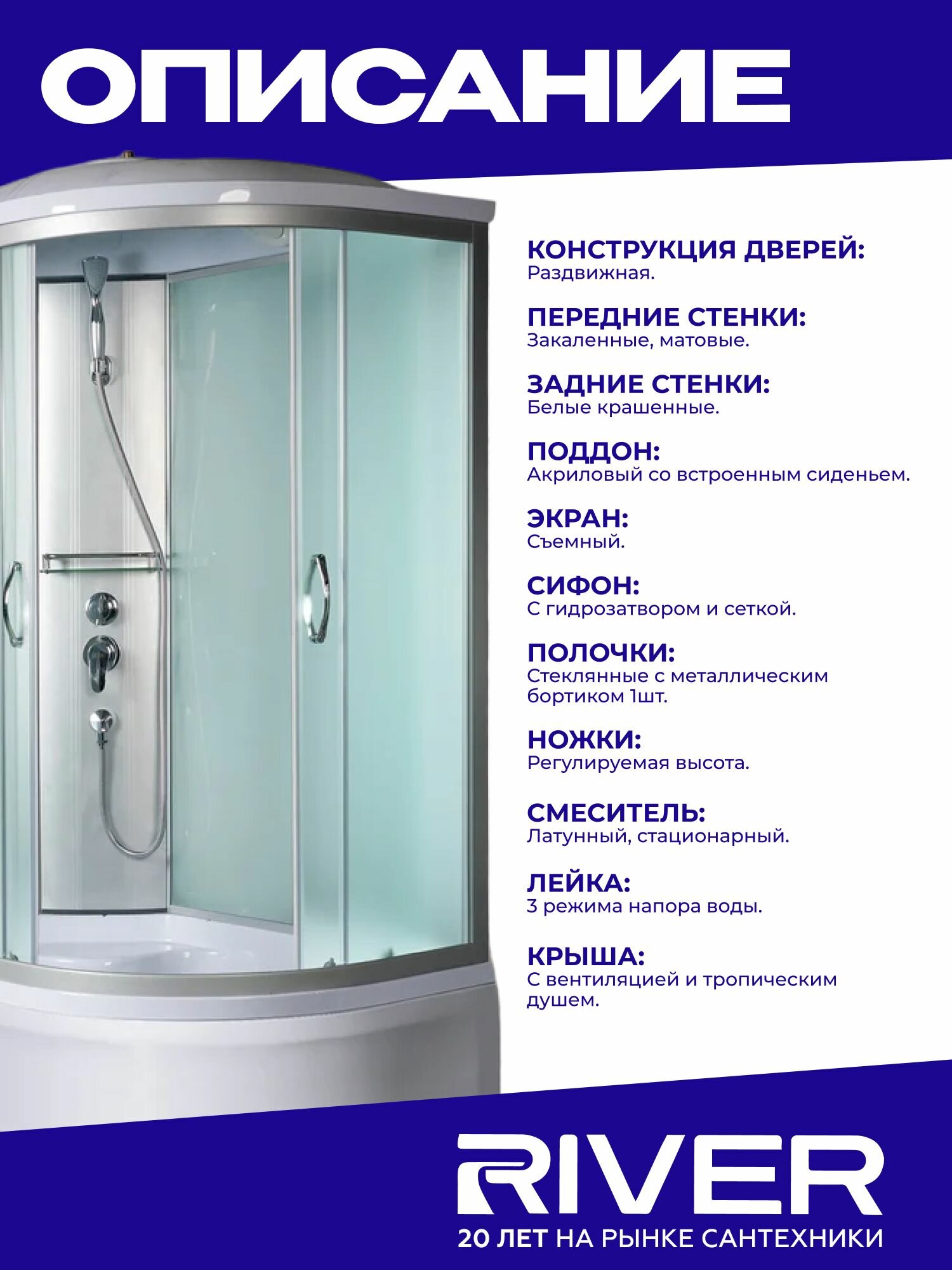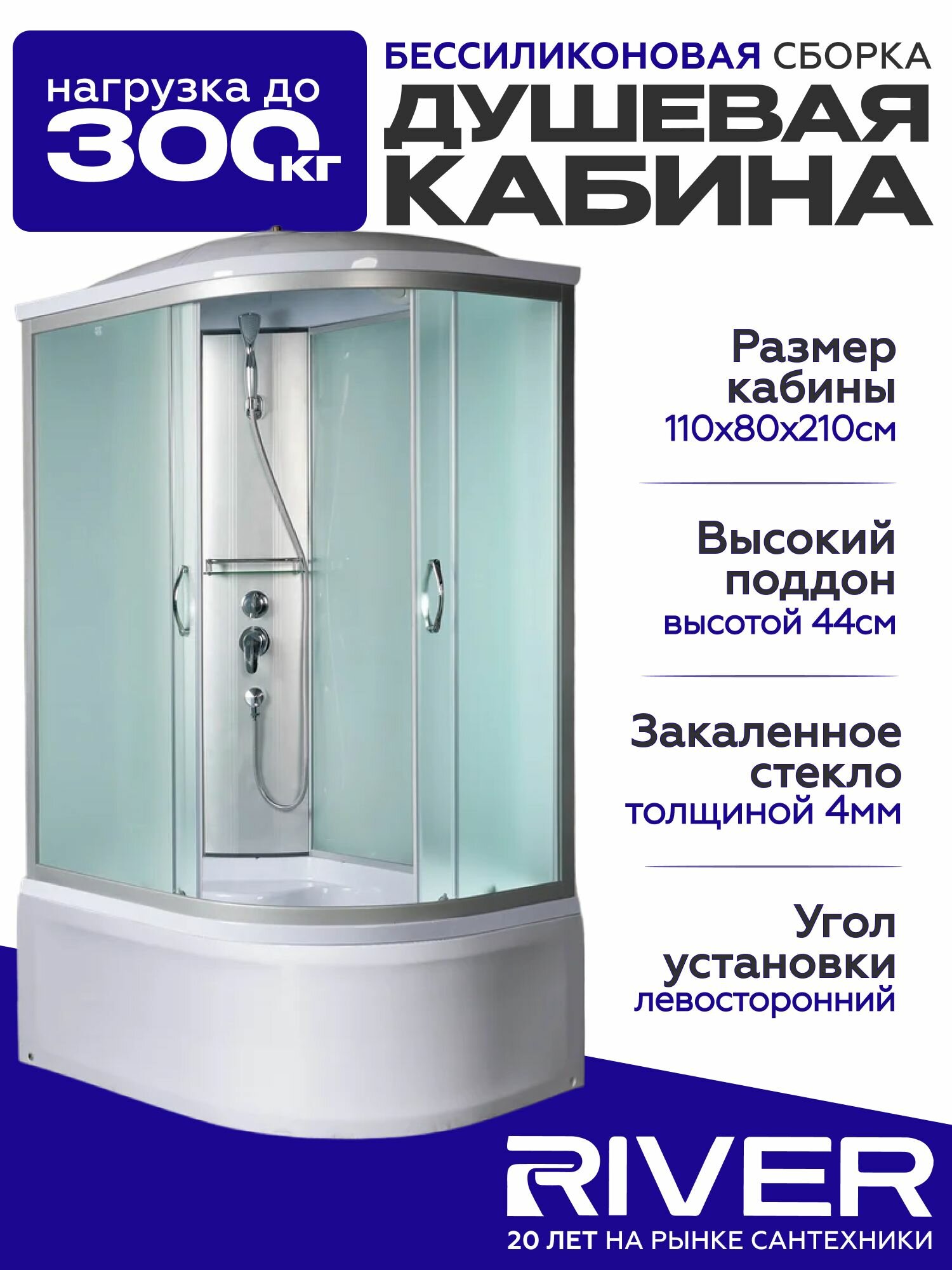 Отзывы на Душевая кабина River NARA (110x80) высокий поддон, стекло матовое, левосторонняя