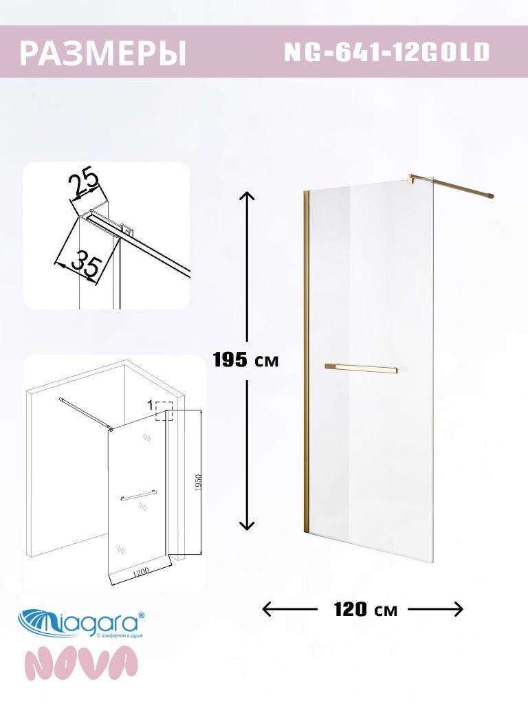 Отзывы на Душевая перегородка Niagara Nova NG-641-12GOLD (120х195) золото, стекло прозрачное,1 место
