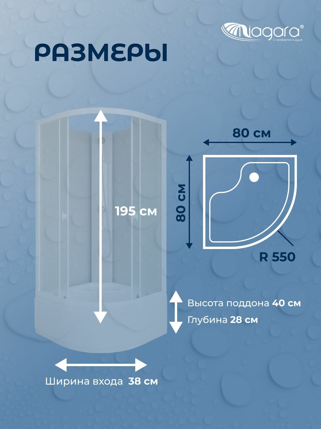 Душевая кабина Niagara Briz (80х80х195), высокий поддон, без крыши информация: